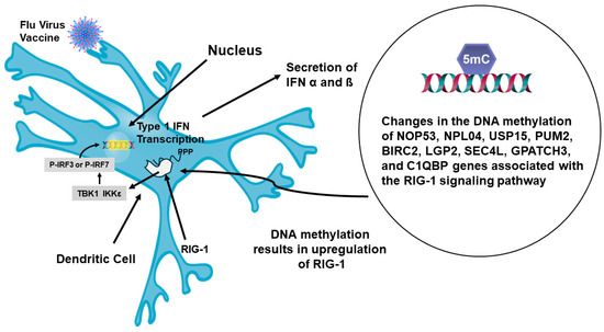 - Fu, H.; Pickering, H.; Rubbi, L.; Ross, T.M.; Reed, E.F.; Pellegrini, M. Longitudinal analysis of influenza vaccination implicates regulation of RIG-1 signaling by DNA methylation. Sci. Rep. 2024, 14, 1455. [Google Scholar] [CrossRef]