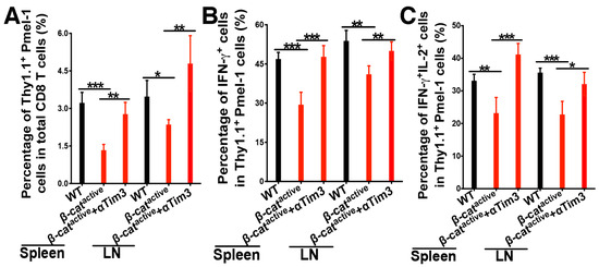 4.4. Anti-Tim-3 Treatment Reverses β-Catenin-Mediated Suppression of CD8 T Cell Responses