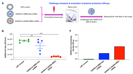 3.5. SARS2-S (SARS-RBD) mRNA-Immune Sera Protected Naïve Mice against SARS-CoV-2 Infection