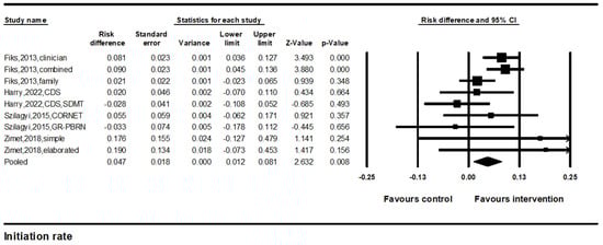 | Initiation Rates | 1. Provider feedback | Q (df = 1) = 8.60 | 0.003 | ||