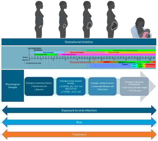 Significant strides have been made in understanding antiviral therapy for pregnant women, but further efforts are needed to combat future pandemics and control viral infections by 2030. Ongoing research aims to address ethical drug experimentation and the pharmacokinetics, metabolism, and pharmacological effects of pregnancy to improve care and save lives during outbreaks. To accelerate progress, preclinical studies should be completed earlier, and under certain conditions, pregnant women could be included in phase III trials to obtain crucial safety and efficacy data sooner. Traditionally excluded from clinical trials, pregnant women need to be included with appropriate safeguards to close the data gap on drug safety and efficacy. There is a pressing need for accurate models of human pregnancy, considering the combined effects of pregnancy and other health conditions on physiological changes. Integrating viral infection dynamics into modeling efforts, such as PBPK modeling, shows promise for future research. Our research group is promoting this approach [208,209,233,234,235,236,237,238,239,240]. By refining these models with more data and incorporating viral dynamics, we can optimize antiviral therapy for pregnant women. Challenges include validating PBPK models and addressing gaps in system models, but opportunities lie in simulating outcomes in clinical studies, establishing registries, and informing individualized dosing decisions. In summary, while there are challenges in integrating viral infection dynamics into PBPK modeling, there are also significant opportunities to enhance our understanding of antiviral therapy for pregnant women. Continued research holds promise for developing tailored therapeutic strategies to meet the unique needs of pregnant individuals and improve treatment outcomes.
