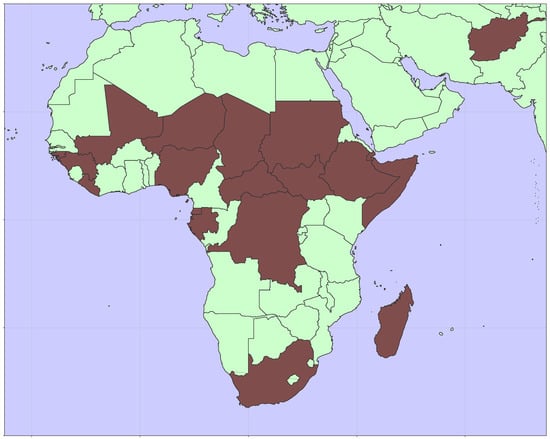 - ESRI. World Countries—Generalized. Available online: https://hub.arcgis.com/datasets/esri::world-countries-generalized/explore (accessed on 31 December 2023).