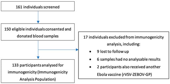 The following supporting information can be downloaded at: https://www.mdpi.com/article/10.3390/vaccines12080828/s1, Supplementary Table S1: Participant eligibility criteria; Supplementary Table S2: Participants who had previously received the rVSV-ZEBOV-GP Ebola vaccine; Supplementary Figure S1: Individual trajectories of Ebola virus glycoprotein-specific IgG binding antibody responses over time.