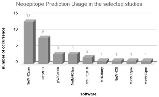 Articles that analyzed cancer data linked to viral infection were excluded since they involve epitopes of viral origin, distinct from neoepitopes originating from somatic mutations in human wild-type sequences. Additionally, articles were excluded if they did not utilize next-generation sequencing (NGS) data or focused solely on previously studied genes. Moreover, articles lacking detailed descriptions of the in silico analysis stage or employing methods irrelevant to this review were excluded. Studies involving murine models and those falling outside the scope of interest were also excluded.