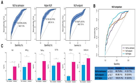 3.2. Elevated Leukocyte, Neutrophil Counts, and NLR as Indicators of Intubation in COVID-19 Patients