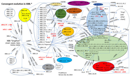 Summary of convergent evolution of Spike protein in XBB.* sublineages.