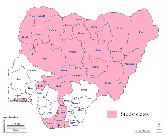 Nigeria is a country in West Africa and the most populous country in Africa. It is a federal country comprising 36 states that are grouped into six geopolitical zones and a Federal Capital Territory (FCT) [19,20]. According to the National Bureau of Statistics, Nigeria had a projected population of 201 million inhabitants in 2019, with an annual birth cohort of 6.8 million children [21].