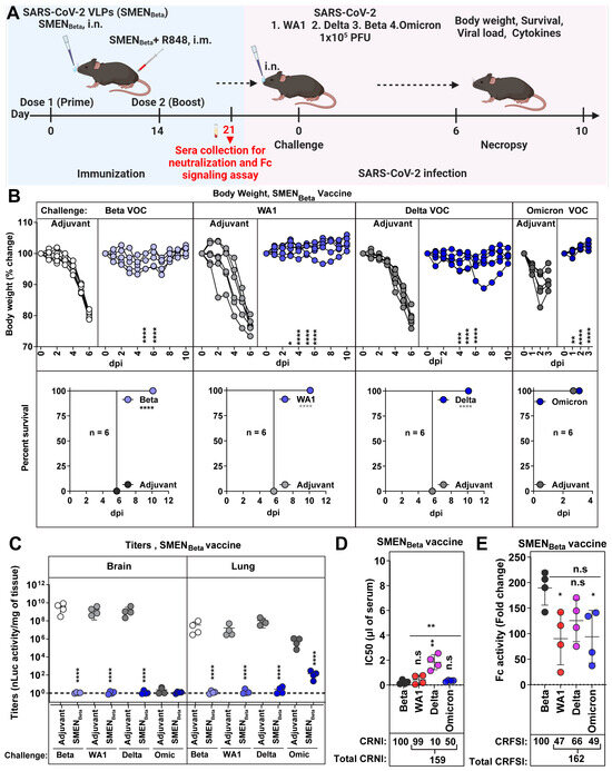 3.4. Cross-Protective Efficacy of SMENWA1 Vaccine Is Reduced against Delta and Ineffective against Beta VOC