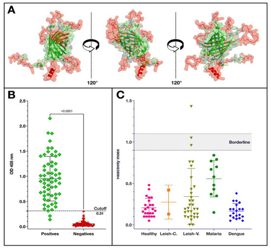 - Balouz, V.; Cámara, M.L.; Cánepa, G.E.; Carmona, S.J.; Volcovich, R.; Gonzalez, N.; Altcheh, J.; Agüero, F.; Buscaglia, C.A. Mapping antigenic motifs in the trypomastigote small surface antigen from Trypanosoma cruzi. Clin. Vaccine Immunol. 2015, 22, 304–312. [Google Scholar] [CrossRef]