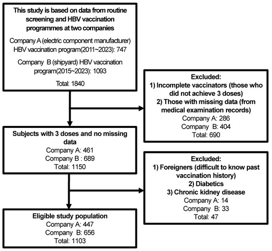 Kim, S.-H.; Chae, C.-H. Potential Association between Shift Work and Serologic Response to Hepatitis B Vaccination among Manufacturing Workers in Republic of Korea. Vaccines 2024, 12, 1041. https://doi.org/10.3390/vaccines12091041