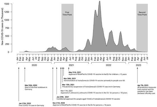 Figure 1 shows the survey time periods in relation to relevant COVID-19 vaccination-related developments in Germany. A total of 543 individuals completed the survey at the first time point, of which 260 participated at the second time point (47.9%, Figure 1). Demographic features of survey participants are shown in Table 1.