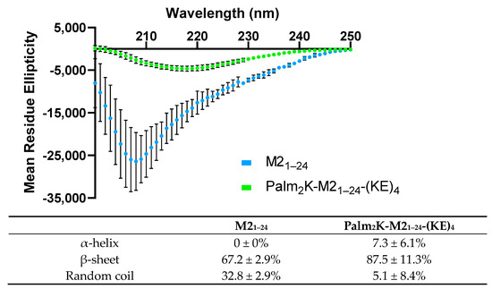 3.1. M21–24 and Palm2K-M21–24-(KE)4 Formed Micelles with Vaccine Favorable Characteristics