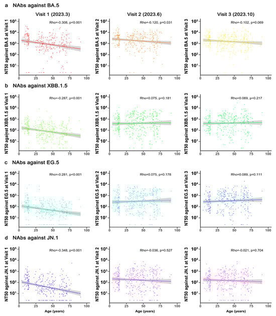 3.3. Correlation Between Age and NAbs Against Different SARS-CoV-2 Variants