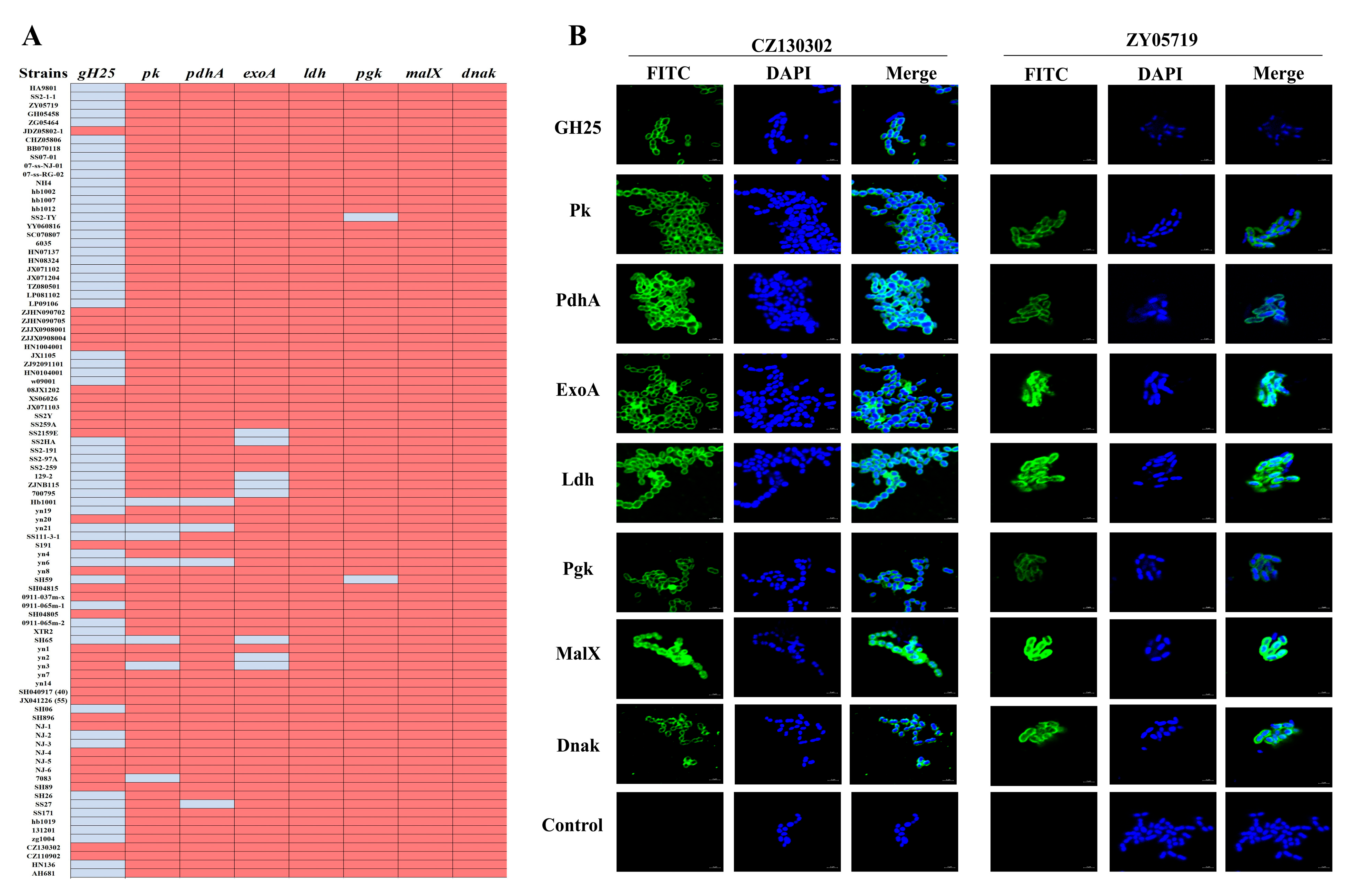 - Jiang, X.; Yang, Y.; Zhou, J.; Liu, H.; Liao, X.; Luo, J.; Li, X.; Fang, W. Peptidyl isomerase PrsA is surface-associated on Streptococcus suis and offers cross-protection against serotype 9 strain. FEMS Microbiol. Lett. 2019, 366, fnz002. [Google Scholar] [CrossRef]