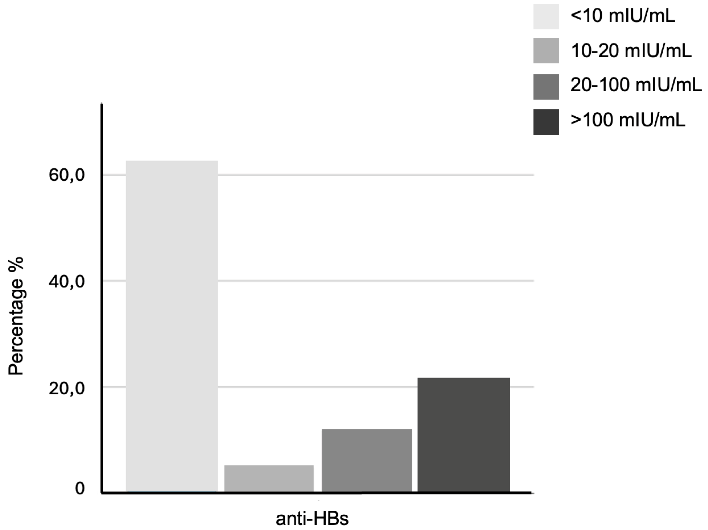 Total | 1008 | 384 (38.1%) | Overall protective anti-HBs levels |