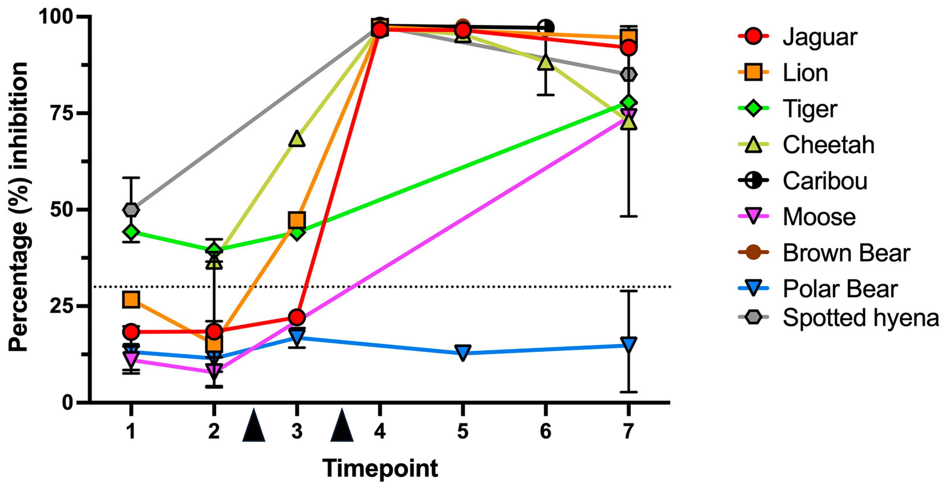 SARS-COV-2 Vaccination Response in Non-Domestic Species Housed at the Toronto Zoo