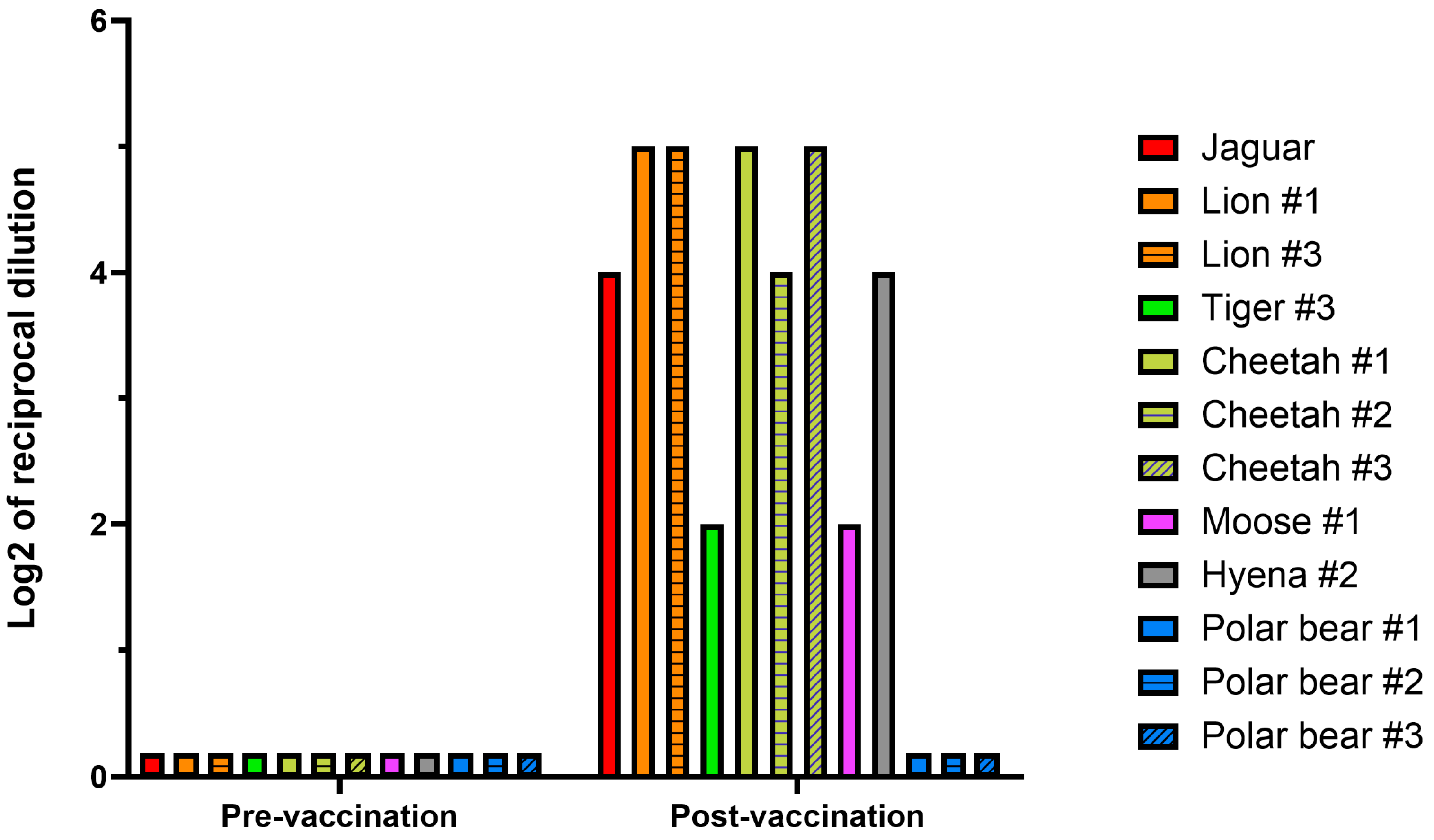 - Nevitt, B.; Lamberski, N. Vaccination of great apes at San Diego Zoo with experimental SARS-CoV-2 veterinary vaccine: Preliminary safety and titers. In Proceedings of the 53rd Annual AAZV Conference, Online, 4 October 2021. [Google Scholar]