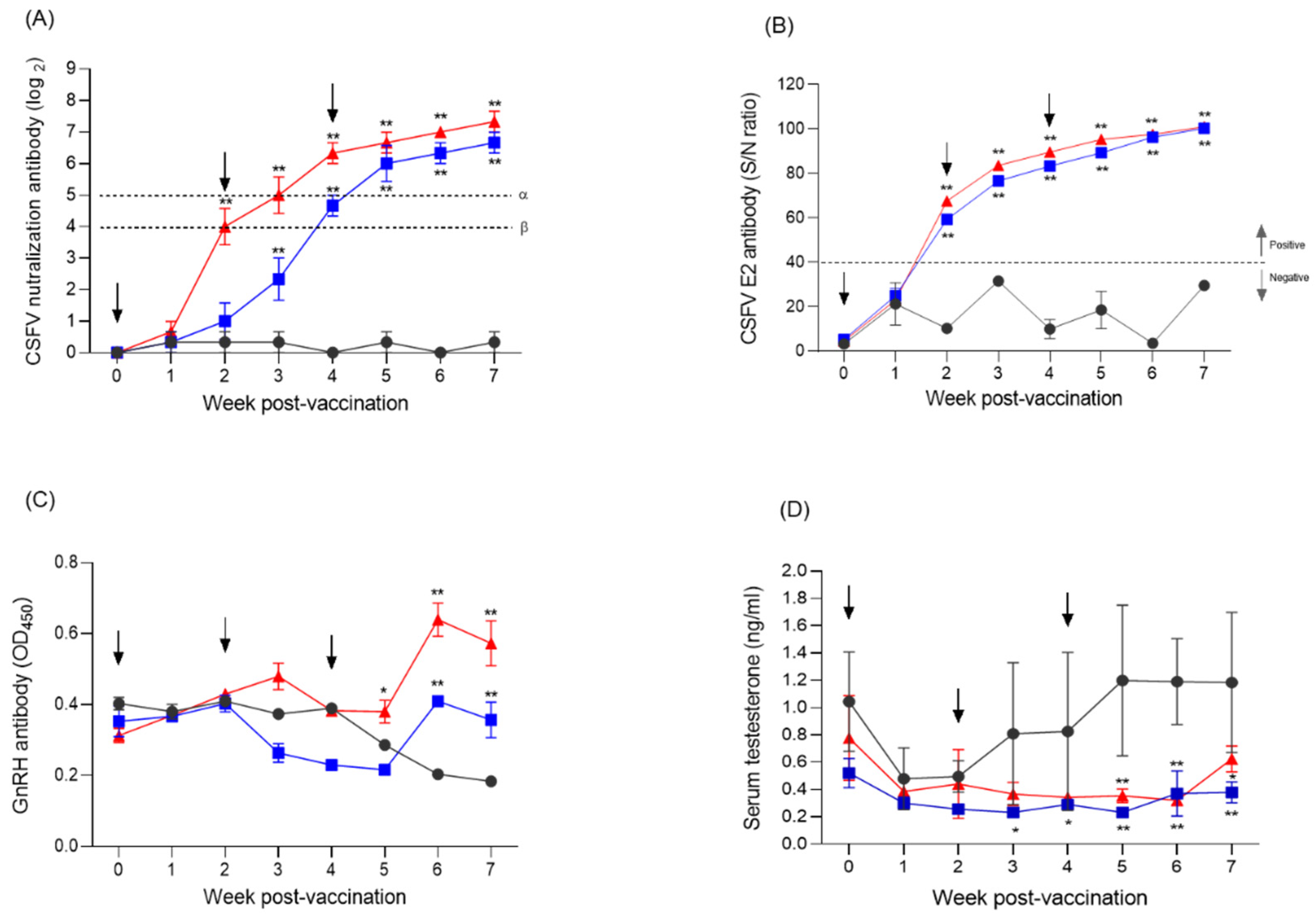Chicago/Turabian StyleAn, Dong-Jun, Ji-Hee Shin, SeEun Choe, Young-Hyeon Lee, Min-Kyung Jang, Byung-Hyun An, Gyu-Nam Park, Yun-Sang Cho, and Kyung-Soo Chang. 2025. "Immunogenicity and Contraceptive Potential of a Classical Swine Fever Viral Vector Live Vaccine Strain Containing Pig Gonadotropin-Releasing Hormone" Vaccines 13, no. 10: 1048. https://doi.org/10.3390/vaccines13101048