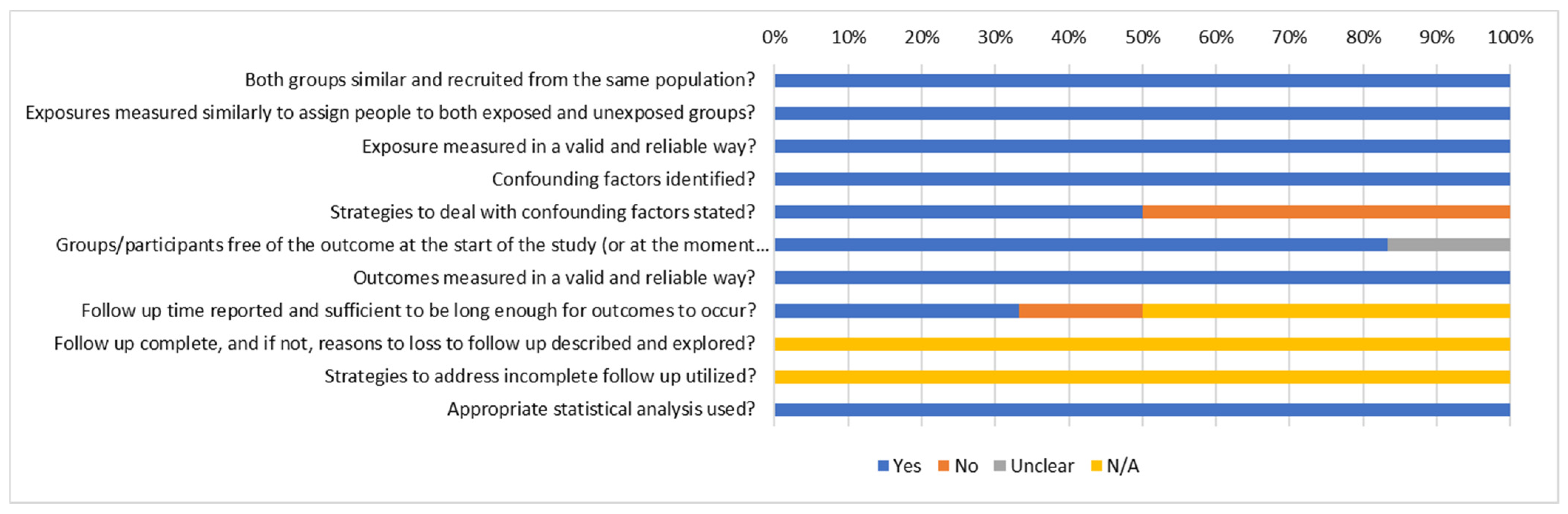 - Joanna Briggs Institute. Checklist for Cohort Studies; The Joanna Briggs Institute (JBI): Adelaide, Australia, 2017. [Google Scholar]