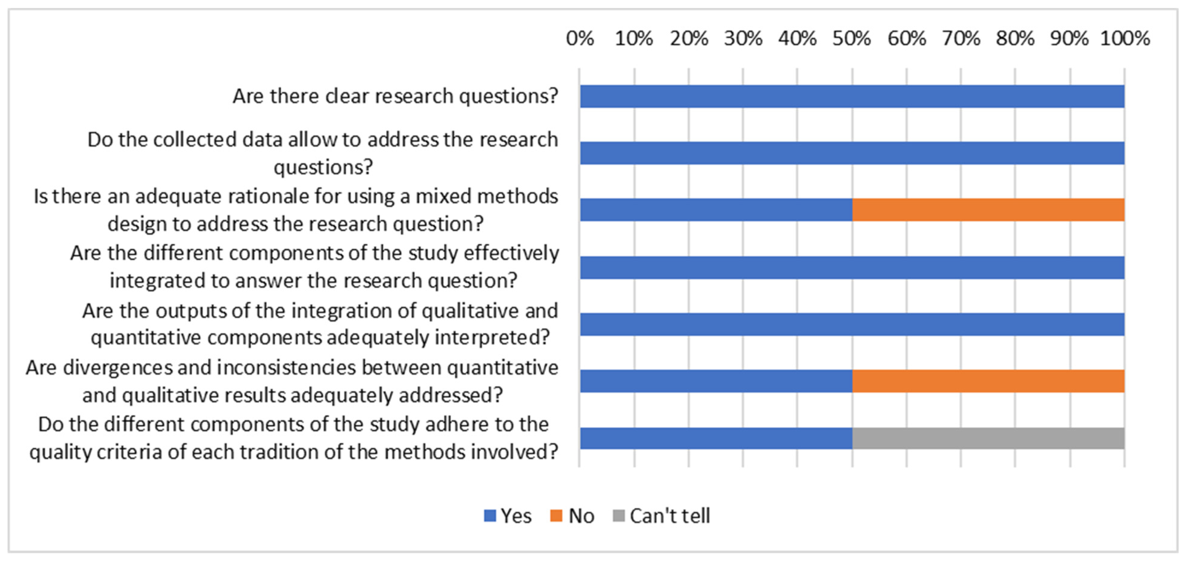 - Hong, Q.N.; Pluye, P.; Fàbregues, S.; Bartlett, G.; Boardman, F.; Cargo, M.; Dagenais, P.; Gagnon, M.-P.; Griffiths, F.; Nicolau, B. Mixed Methods Appraisal Tool (MMAT); Version 2018; Registration of Copyright (#1148552); Canadian Intellectual Property Office: Gatineau, QC, Canada, 2018. [Google Scholar]