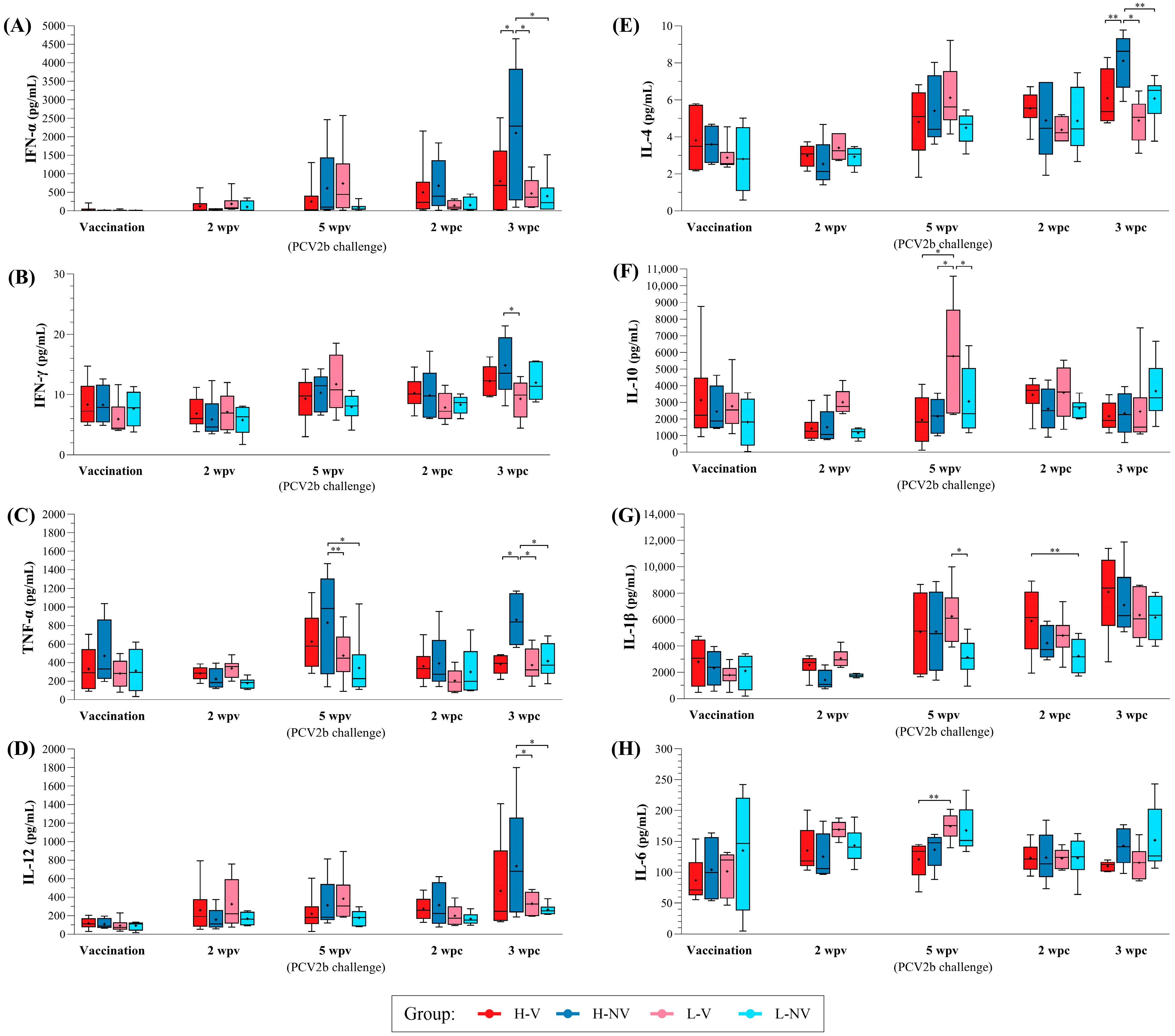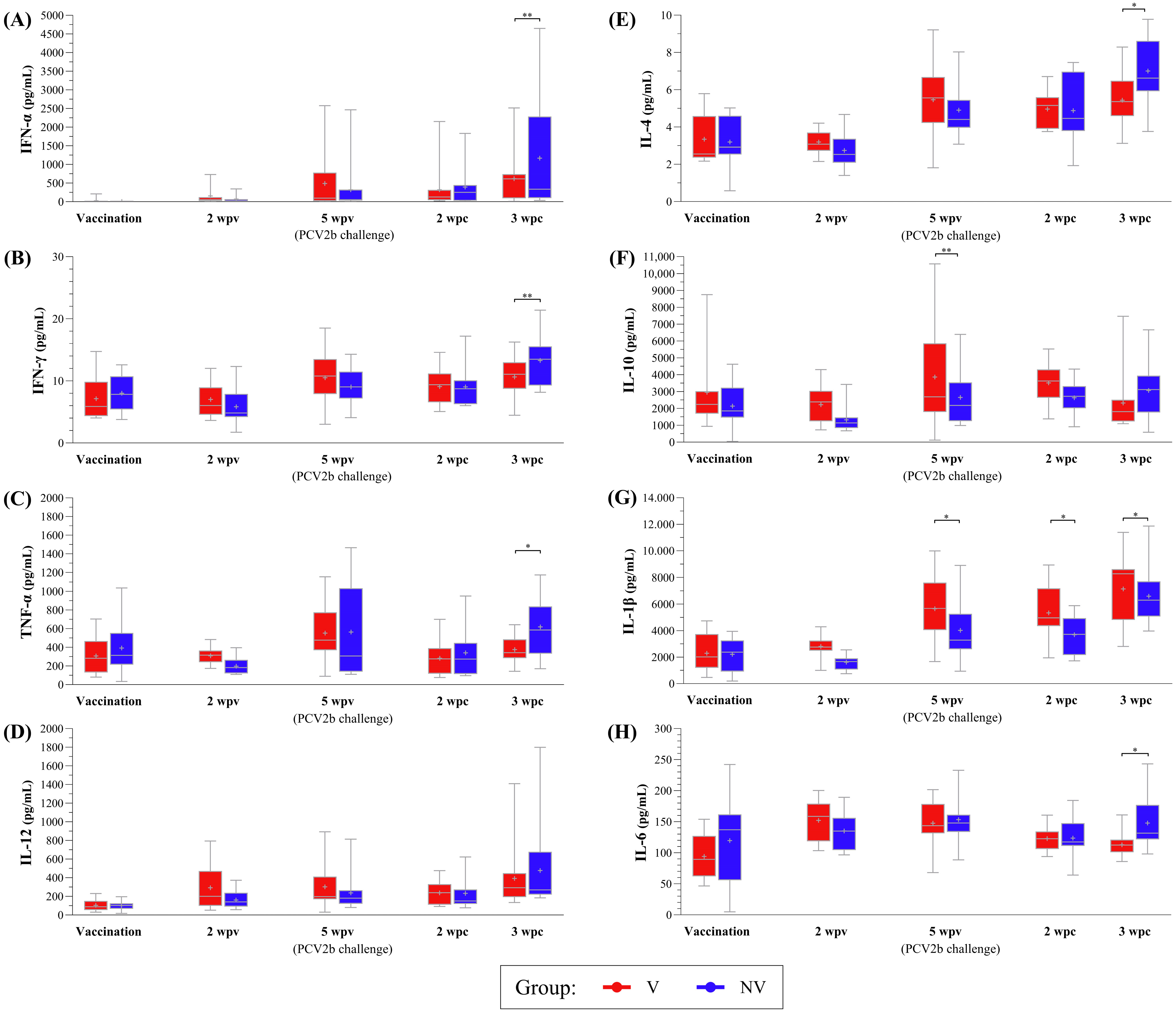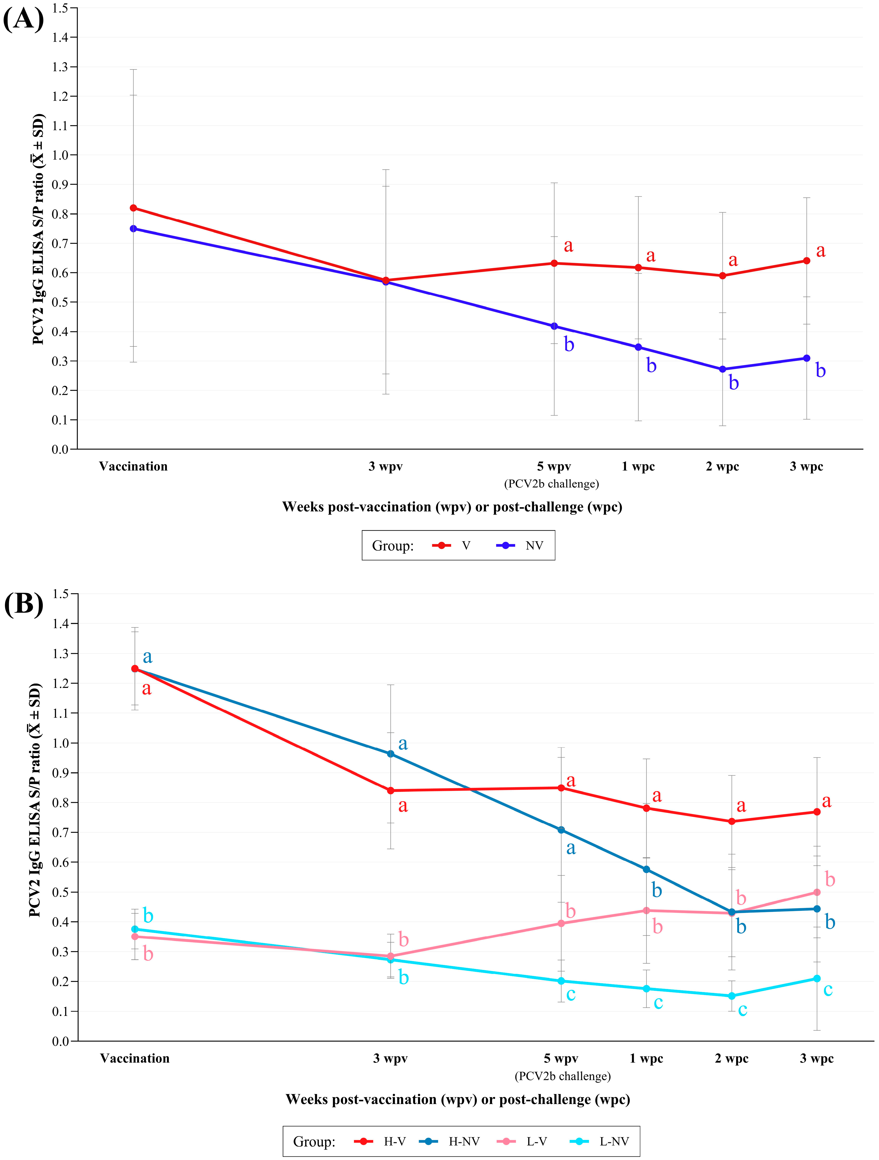Group | Vaccination | Challenge (5 wpv) | Necropsy (3 wpc) | (Vaccination– Challenge) | (Challenge– Necropsy) | (Vaccination–Necropsy) | |