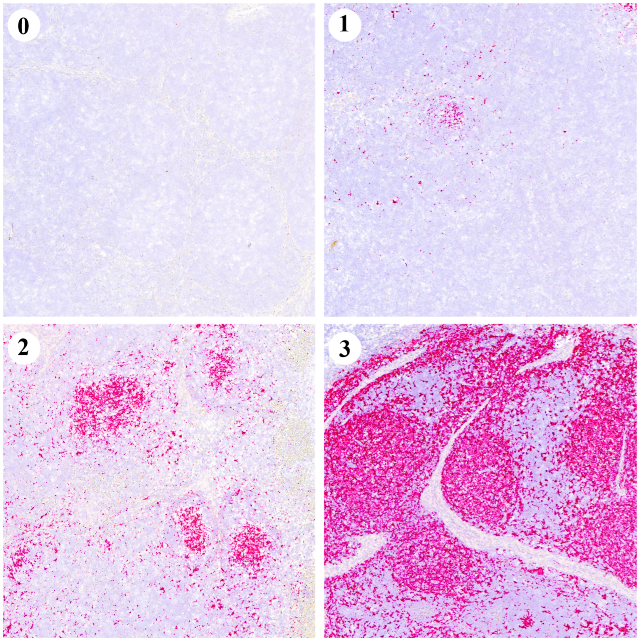3.2.4. Lesion Assessment and PCV2 Antigen Detection in TBLN