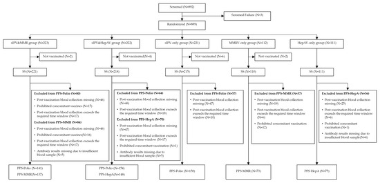 APA StyleHu, J., Han, W., Chu, K., Zhang, H., Tuo, L., Duan, X., Li, J., Yuan, F., Luan, C., Pan, H., & Jiao, P. (2025). Immunogenicity and Safety of Sabin Strain Inactivated Poliovirus Vaccine Booster Dose Administered Separately or Concomitantly with Inactivated Hepatitis A Vaccine or Measles–Mumps–Rubella Combined Attenuated Live Vaccine: An Open-Labelled, Randomized, Controlled, Phase 4 Clinical Trial. Vaccines, 13(11), 1087. https://doi.org/10.3390/vaccines13111087