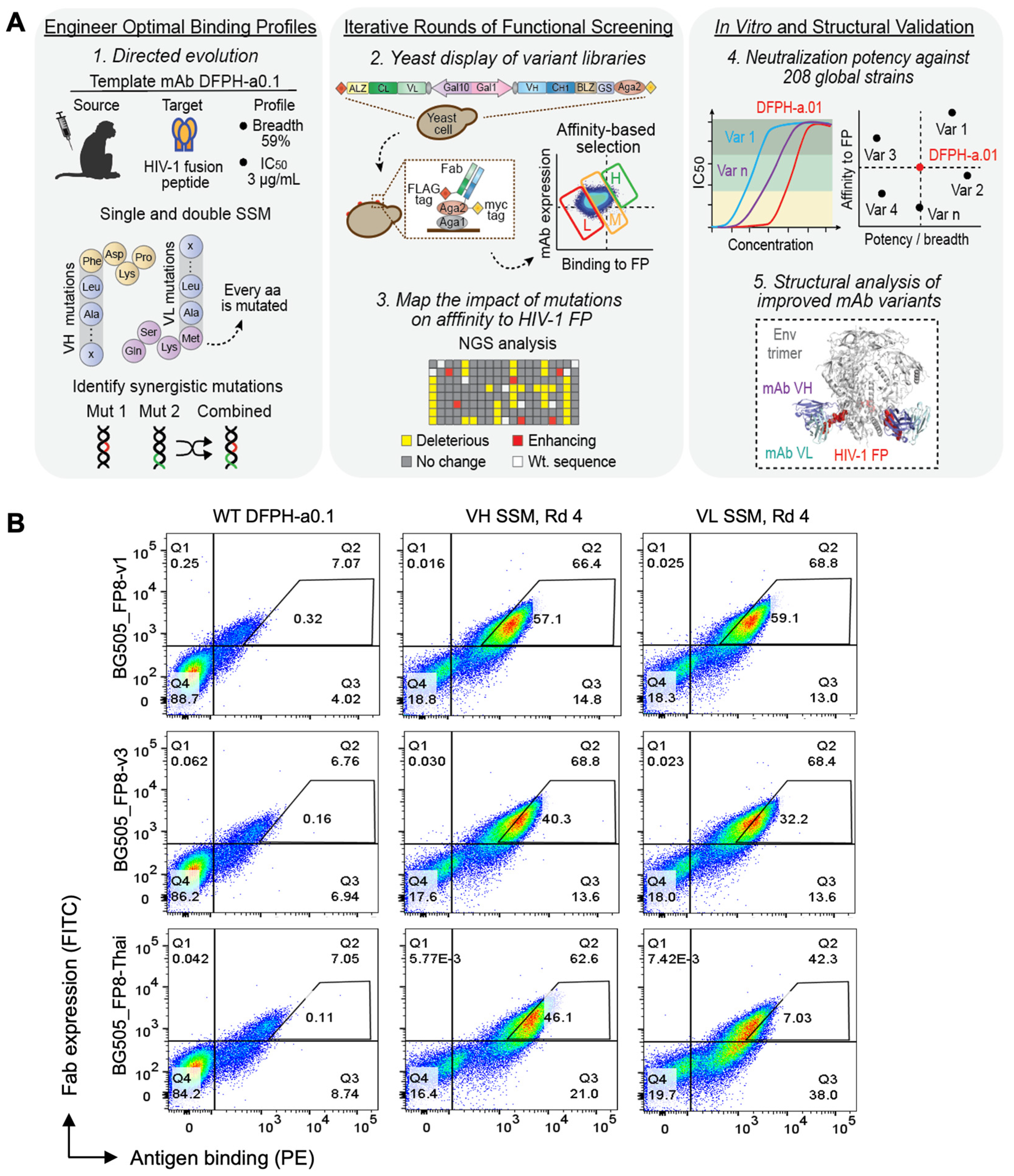 APA StyleFrança, C. T., Pletnev, S., Madan, B., Katsamba, P. S., McKee, K., Morano, N. C., Zhang, B., Bahna, F., Bylund, T., Lin, B. C., Louder, M. K., Mannepalli, S., Nimrania, R., O’Dell, S., Doria-Rose, N. A., Kwong, P. D., Shapiro, L., Sheng, Z., Zhou, T., & DeKosky, B. J. (2025). Yeast Display Reveals Plentiful Mutations That Improve Fusion Peptide Vaccine-Elicited Antibodies Beyond 59% HIV-1 Neutralization Breadth. Vaccines, 13(11), 1098. https://doi.org/10.3390/vaccines13111098