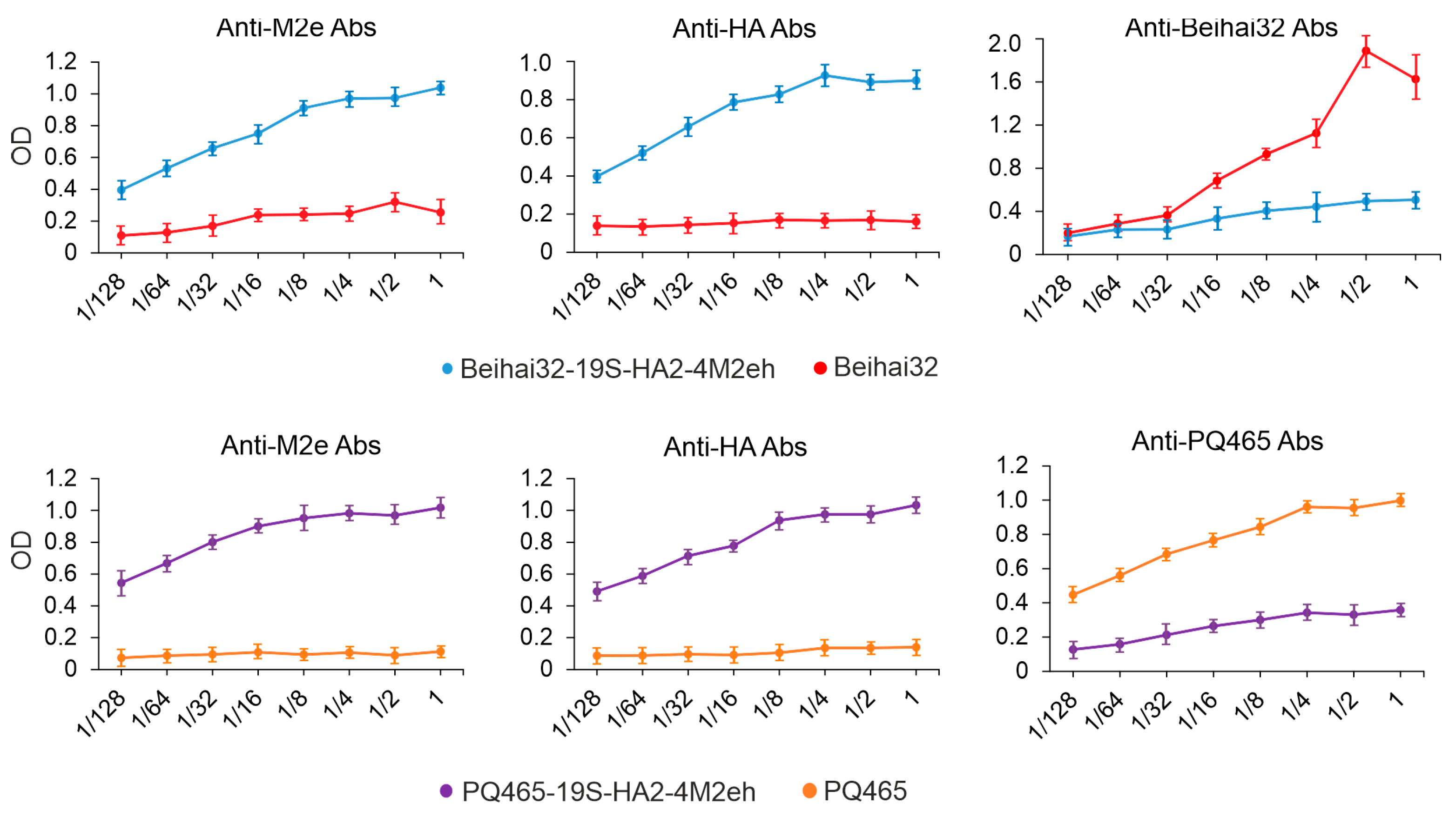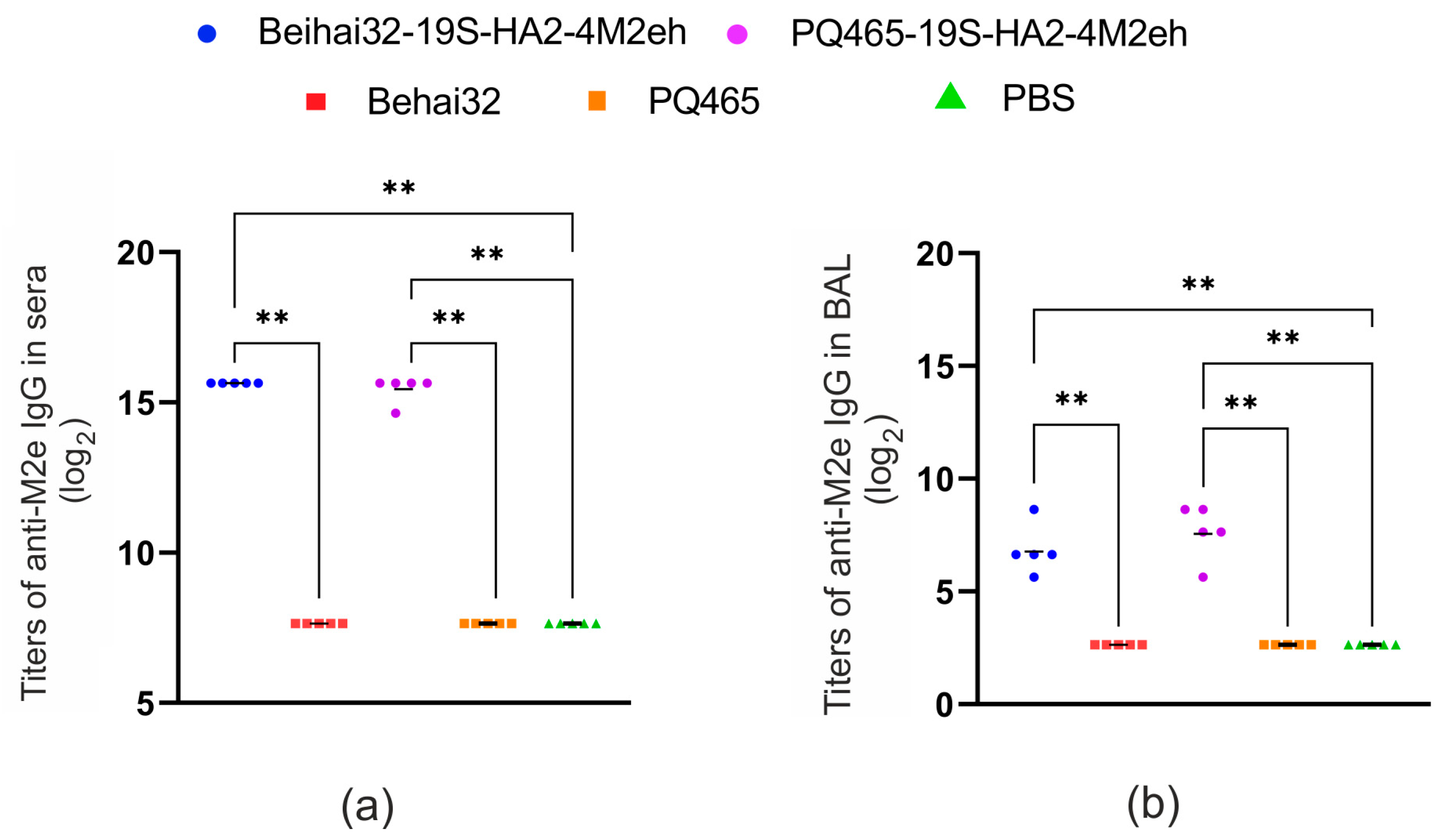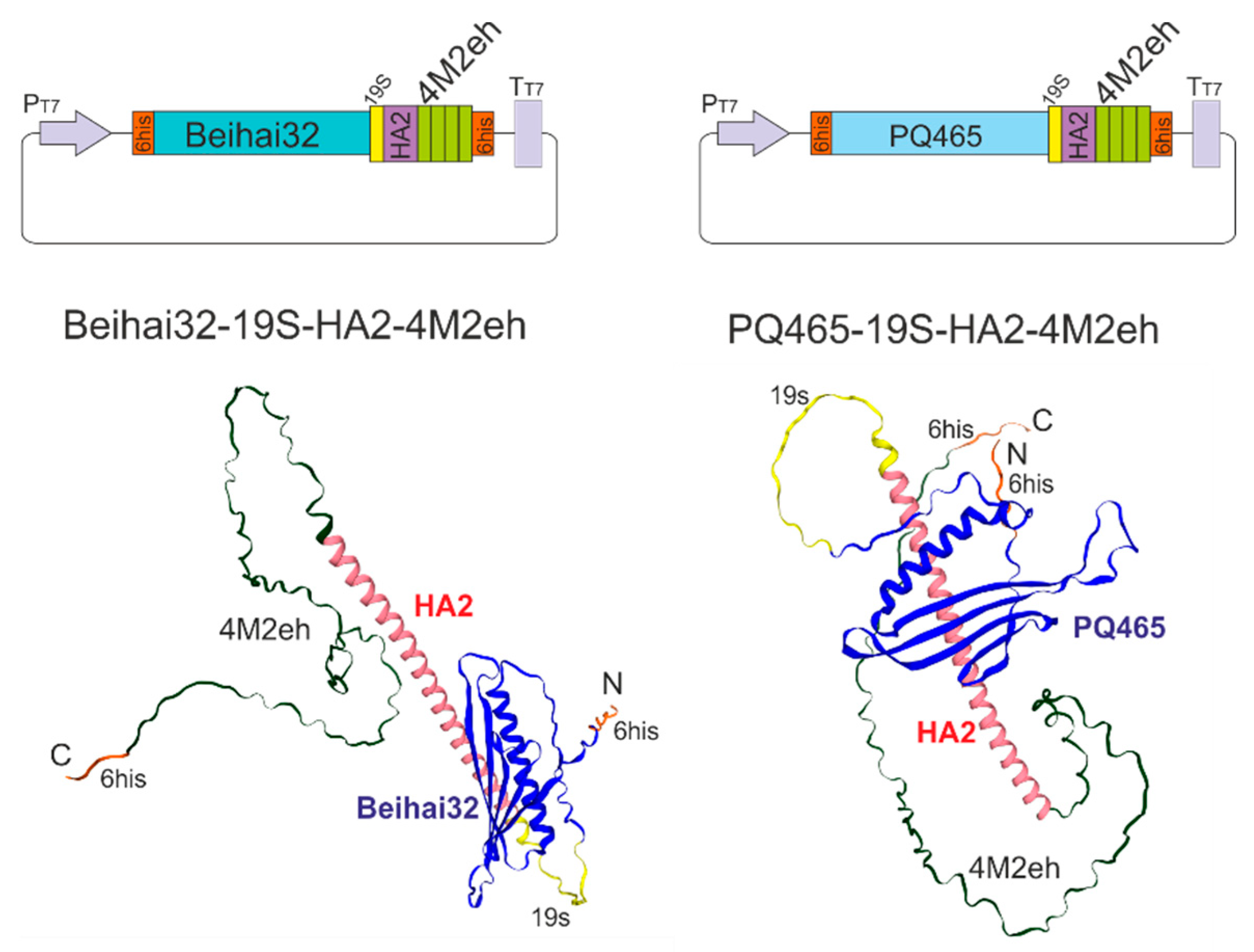 Vasyagin, E.A.; Zykova, A.A.; Blokhina, E.A.; Ozhereleva, O.O.; Stepanova, L.A.; Shuklina, M.A.; Klotchenko, S.A.; Mardanova, E.S.; Ravin, N.V. Chimeric Virus-like Particles Formed by the Coat Proteins of Single-Stranded RNA Phages Beihai32 and PQ465, Simultaneously Displaying the M2e Peptide and the Stalk HA Peptide from Influenza a Virus, Elicit Humoral and T-Cell Immune Responses in Mice. Vaccines 2025, 13, 1117. https://doi.org/10.3390/vaccines13111117