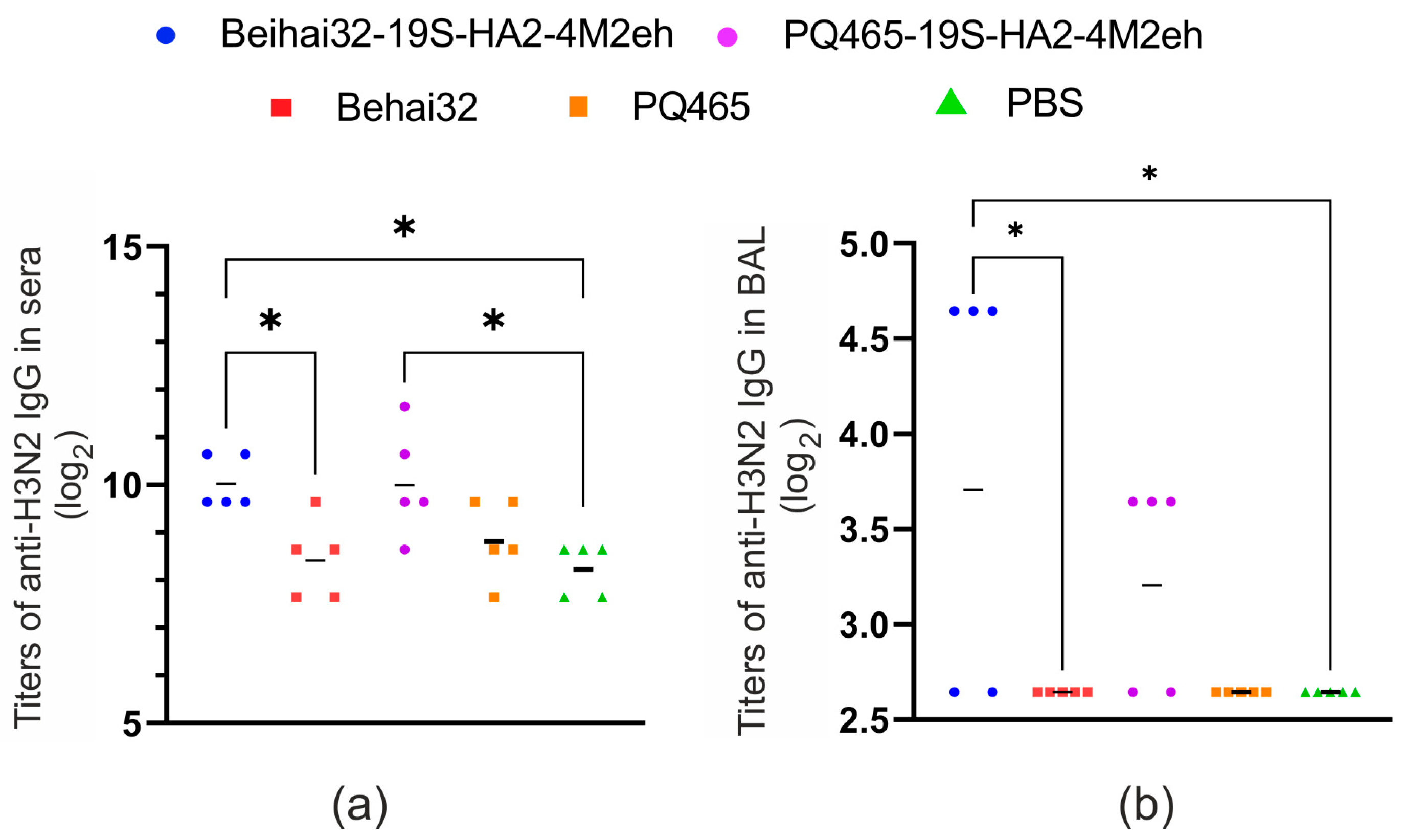 3.3. Analysis of the Humoral Immune Response Induced by Chimeric VLPs