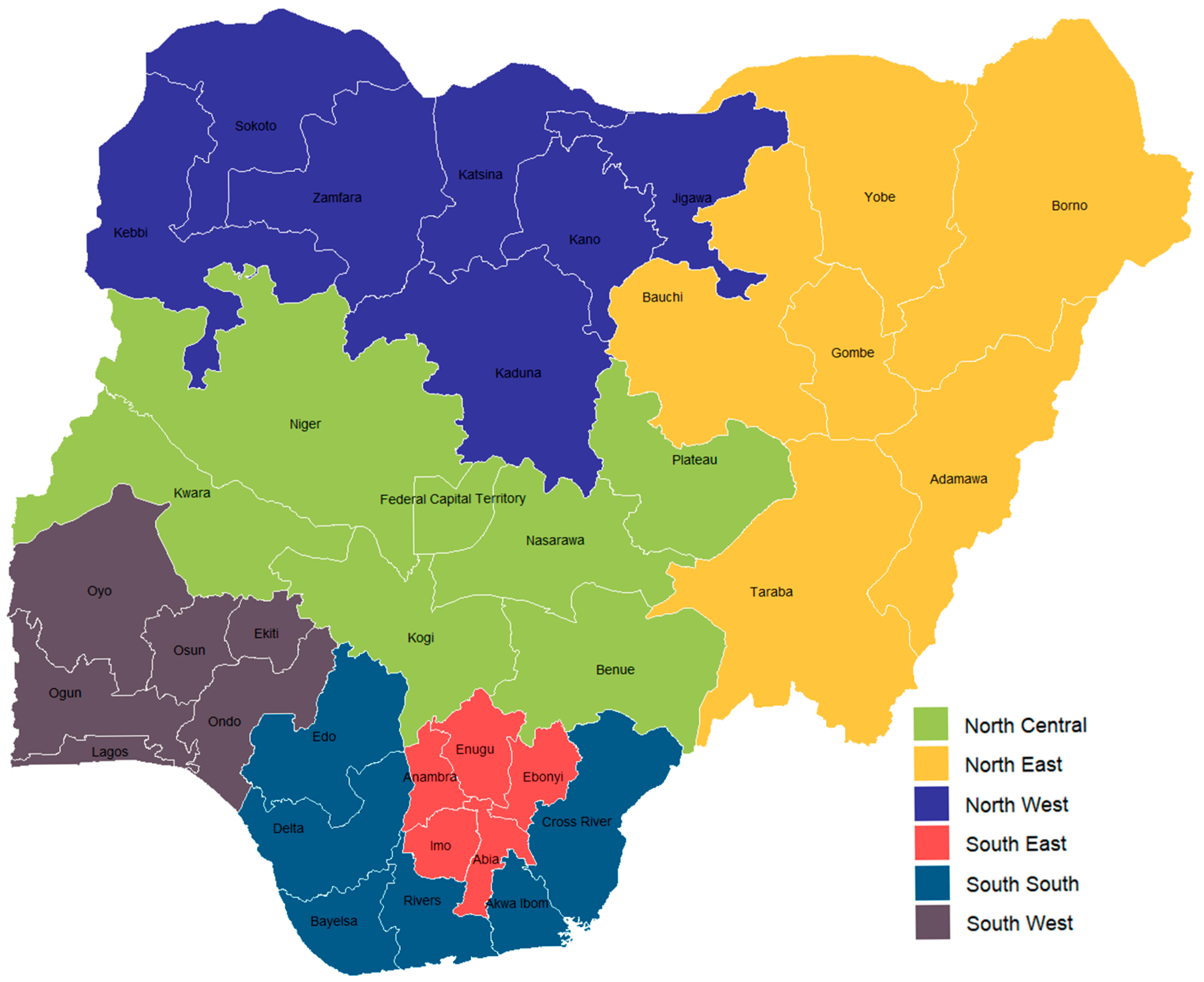 Distribution of Nigerian states across the 6 geopolitical zones.