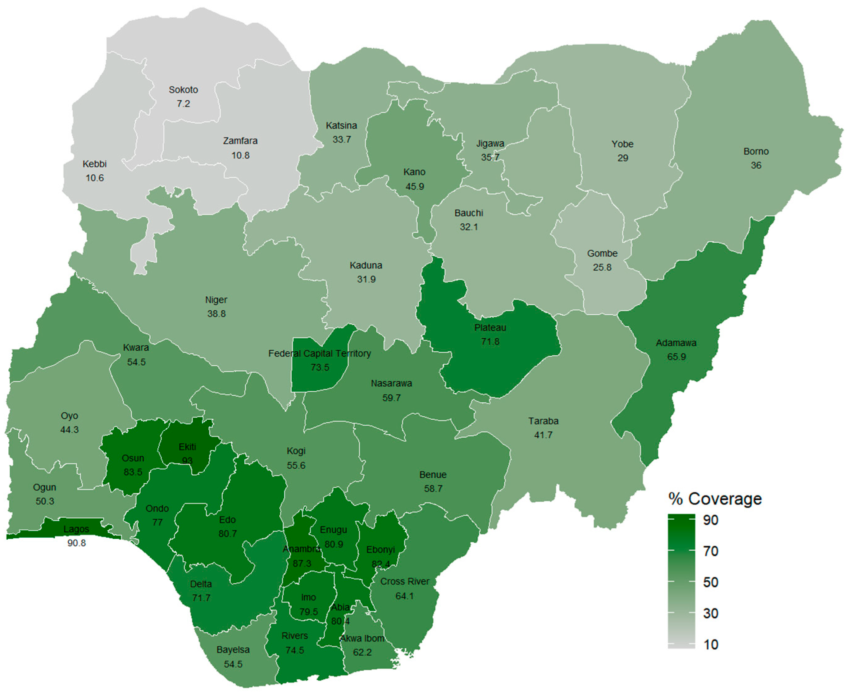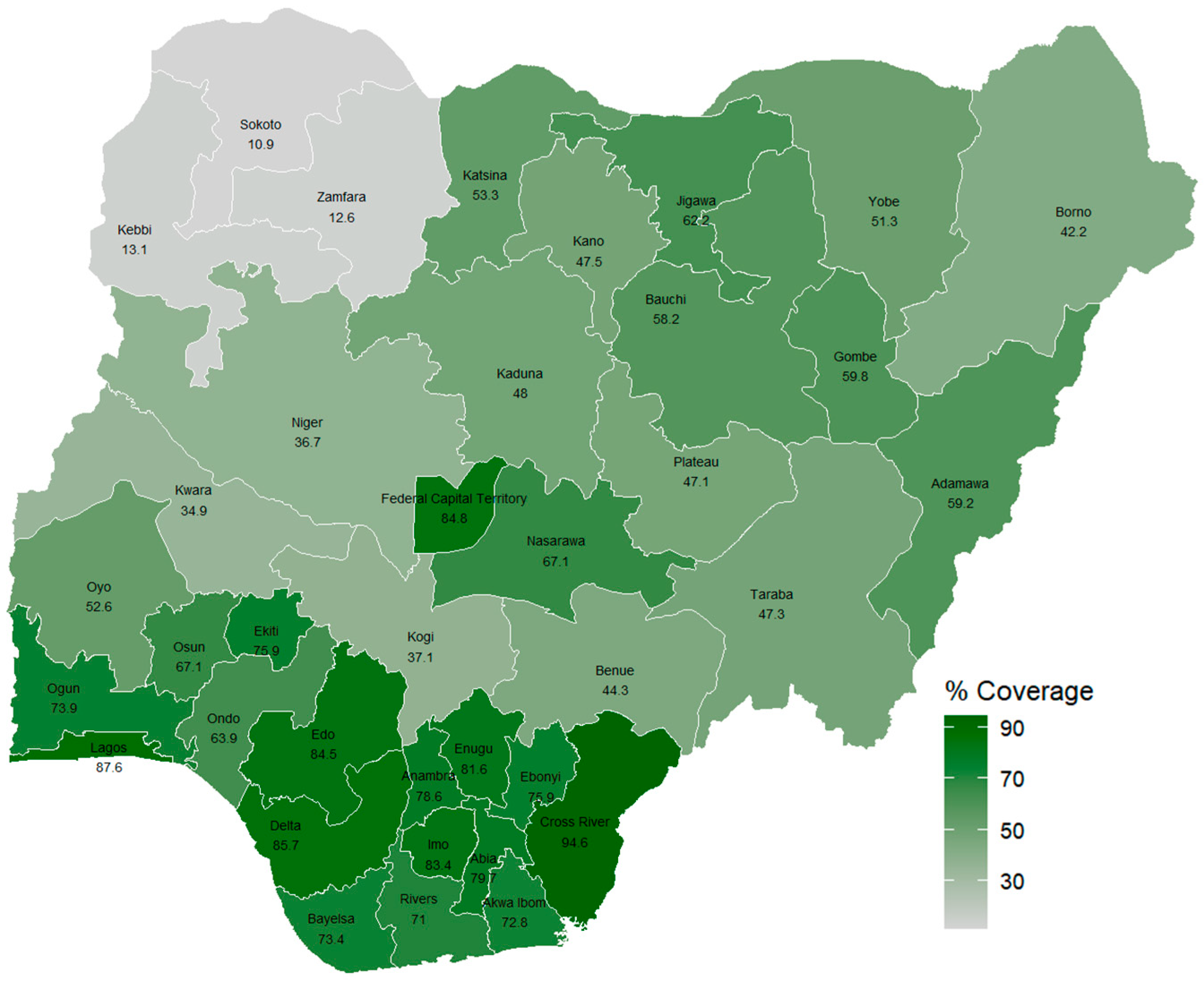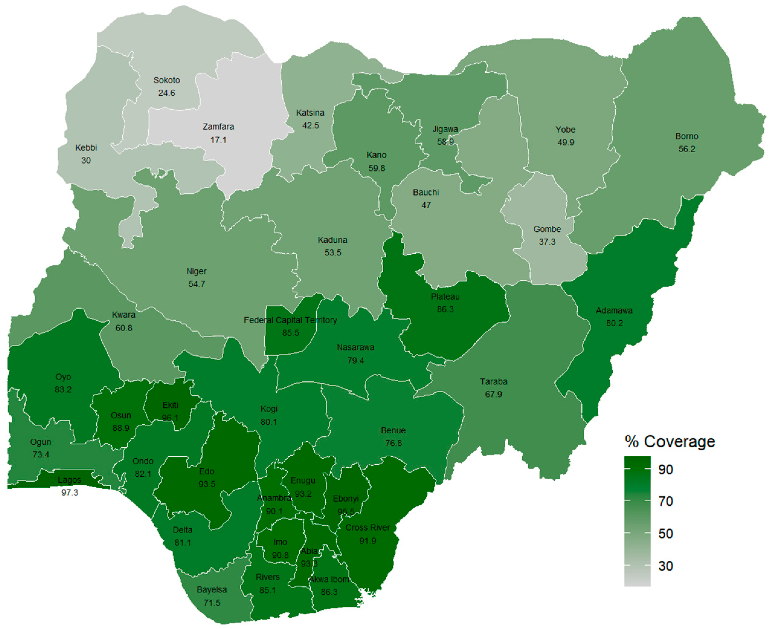 - National Population Commission (NPC) [Nigeria]; ICF. Nigeria Demographic and Health Survey 2018; NPC: Abuja, Nigeria; ICF: Rockville, MD, USA, 2019.