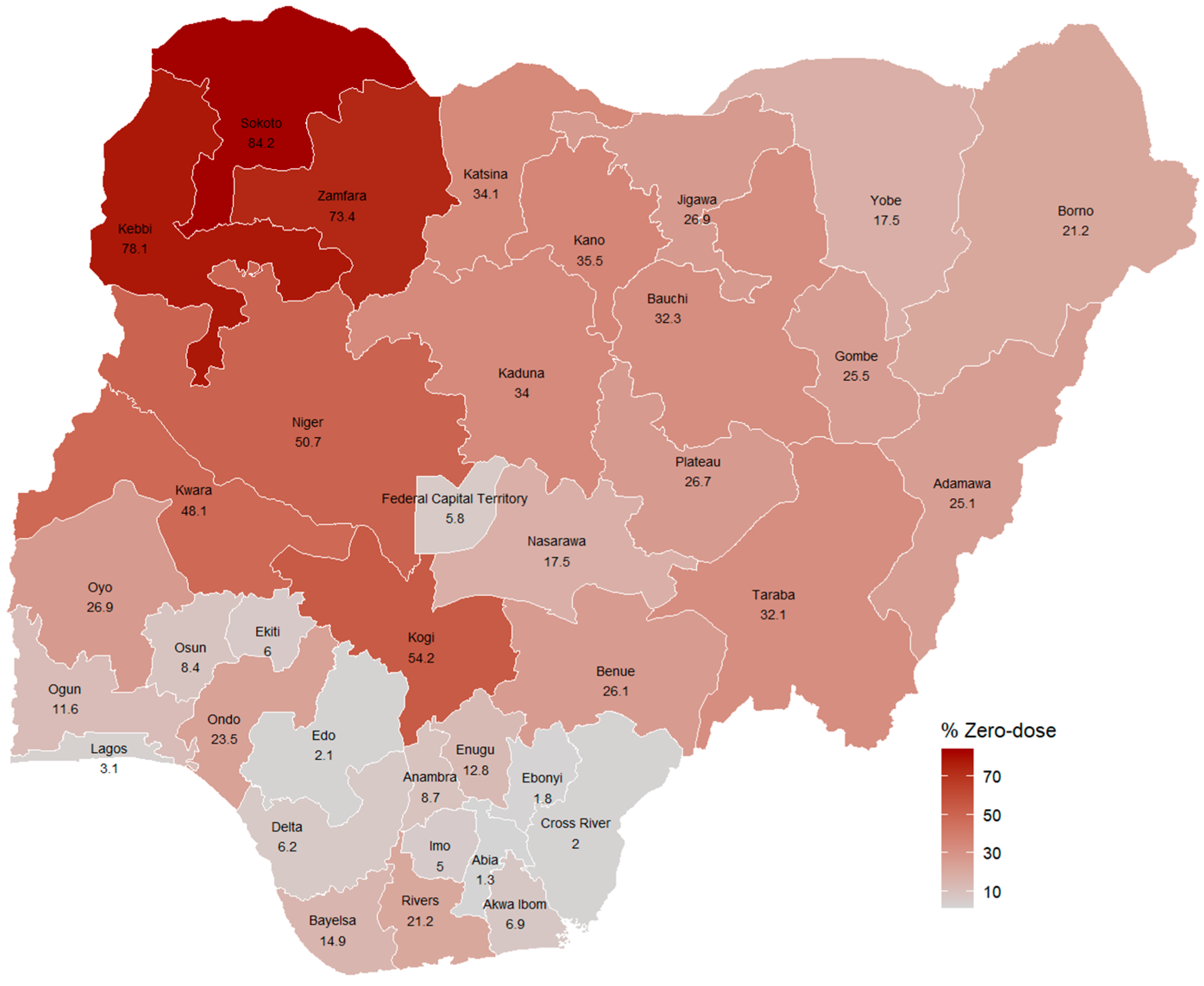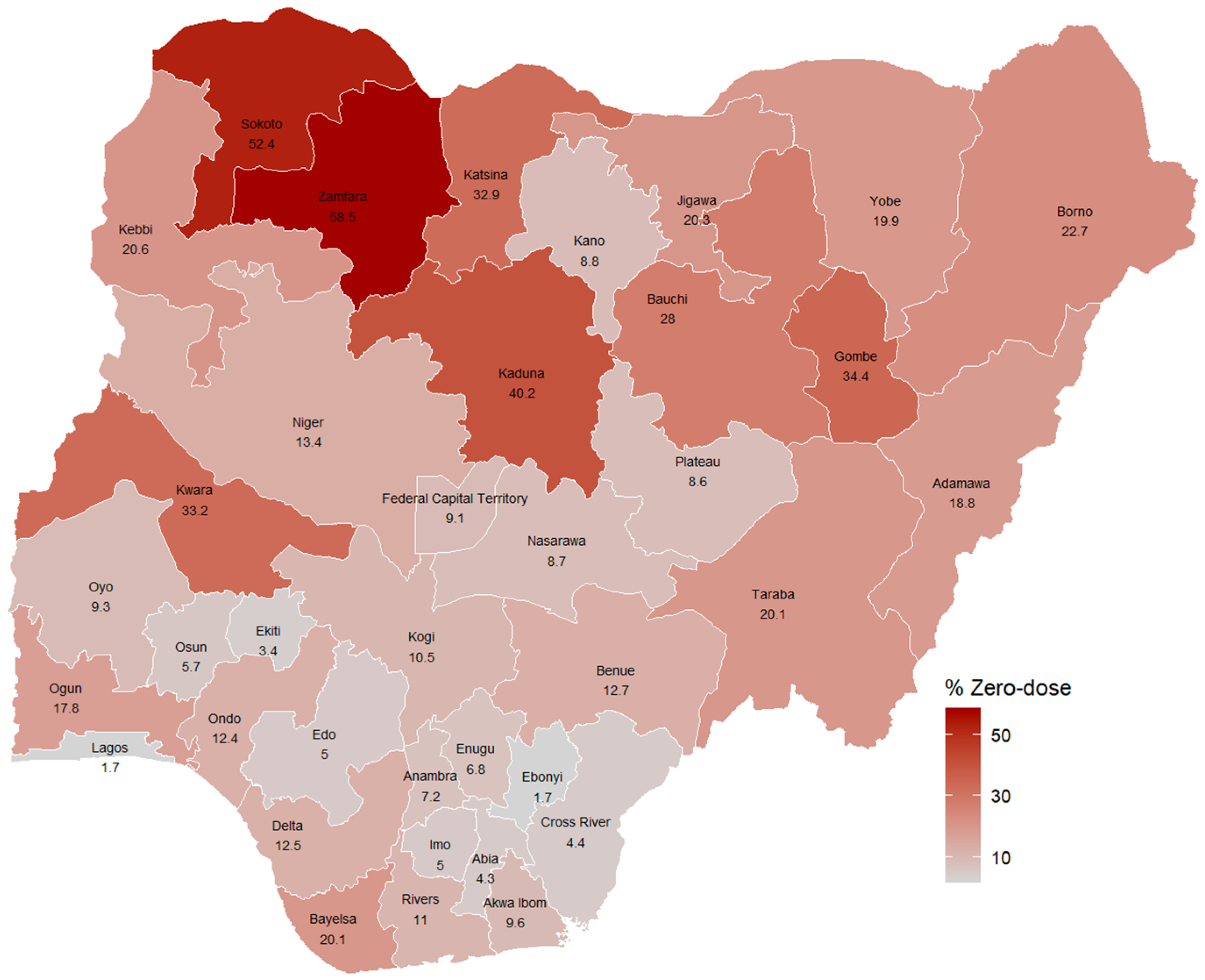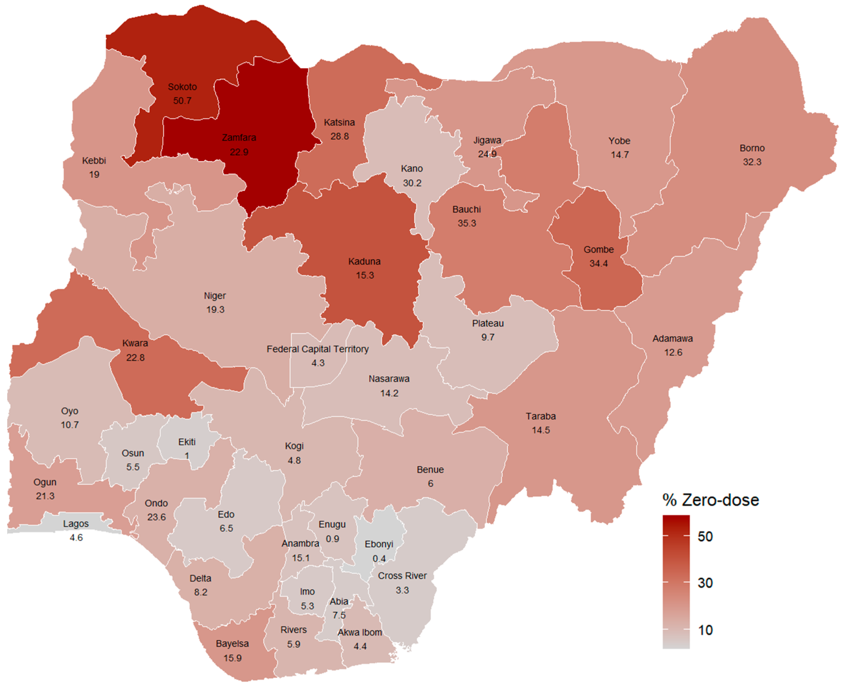 The 2018 zero-dose prevalence in Nigeria [20].