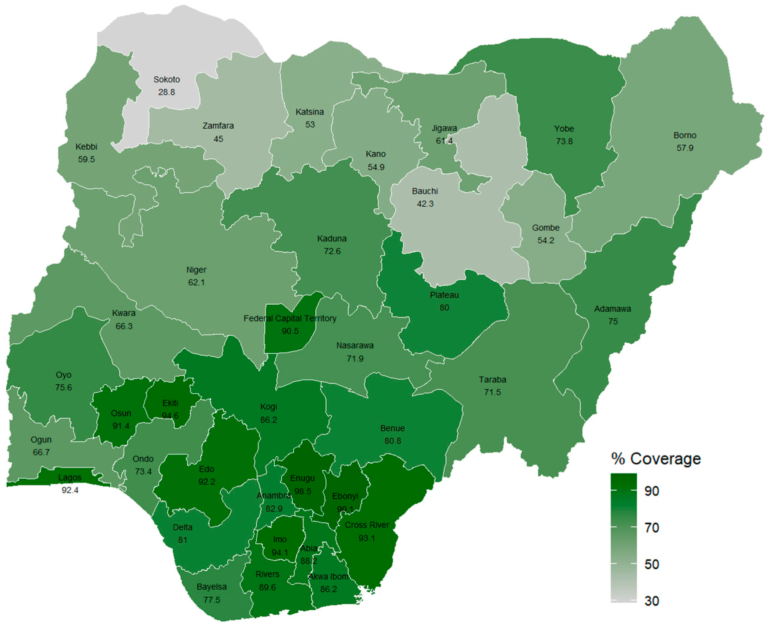 The 2024 penta 1 vaccination coverage in Nigeria [10].