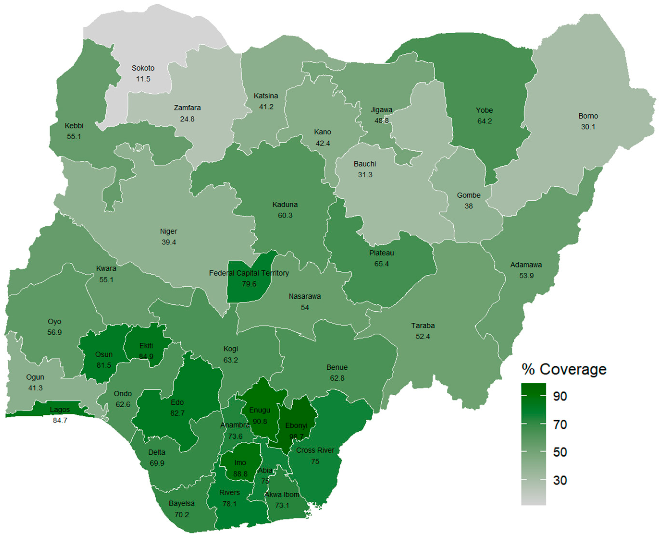 The 2021 penta 3 vaccination coverage in Nigeria [9].