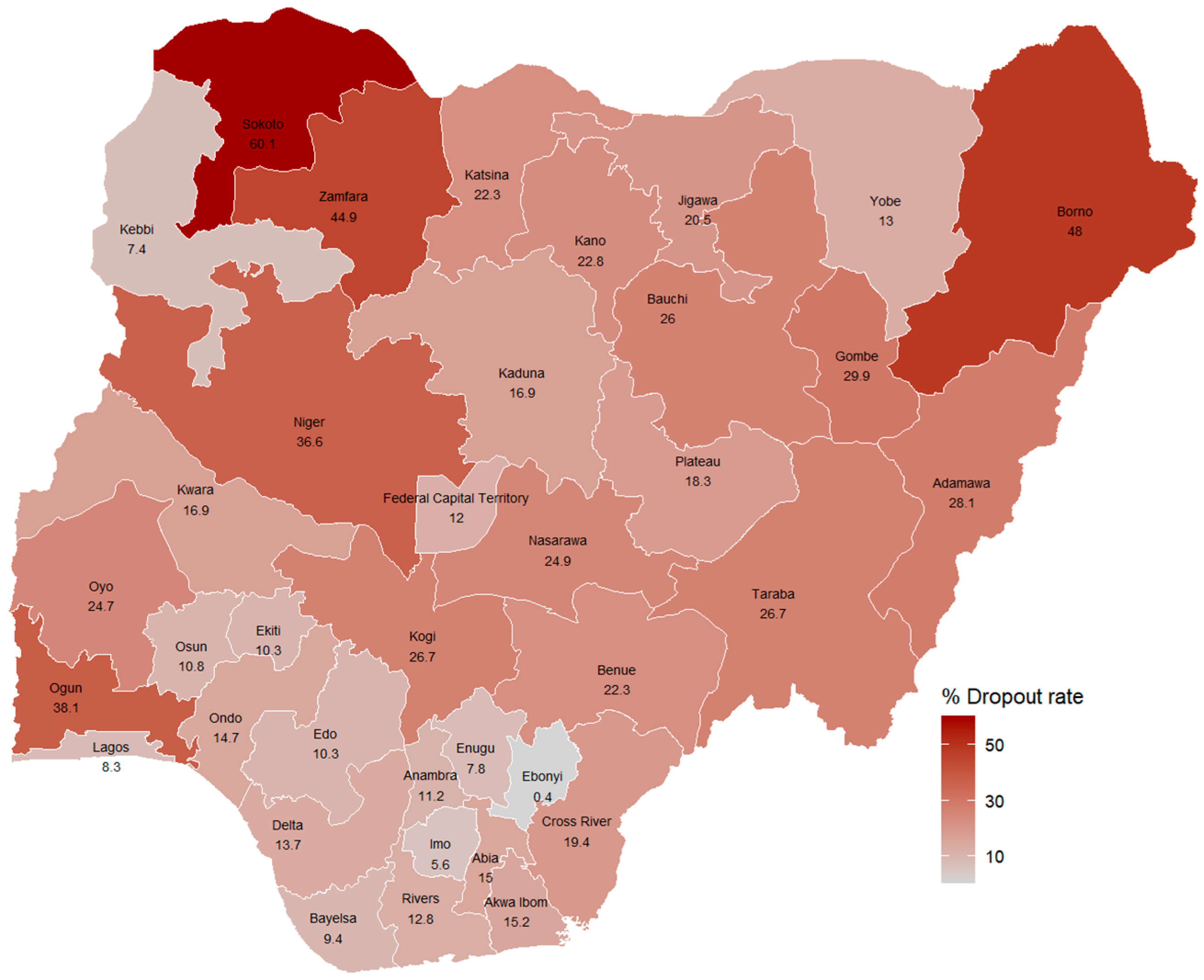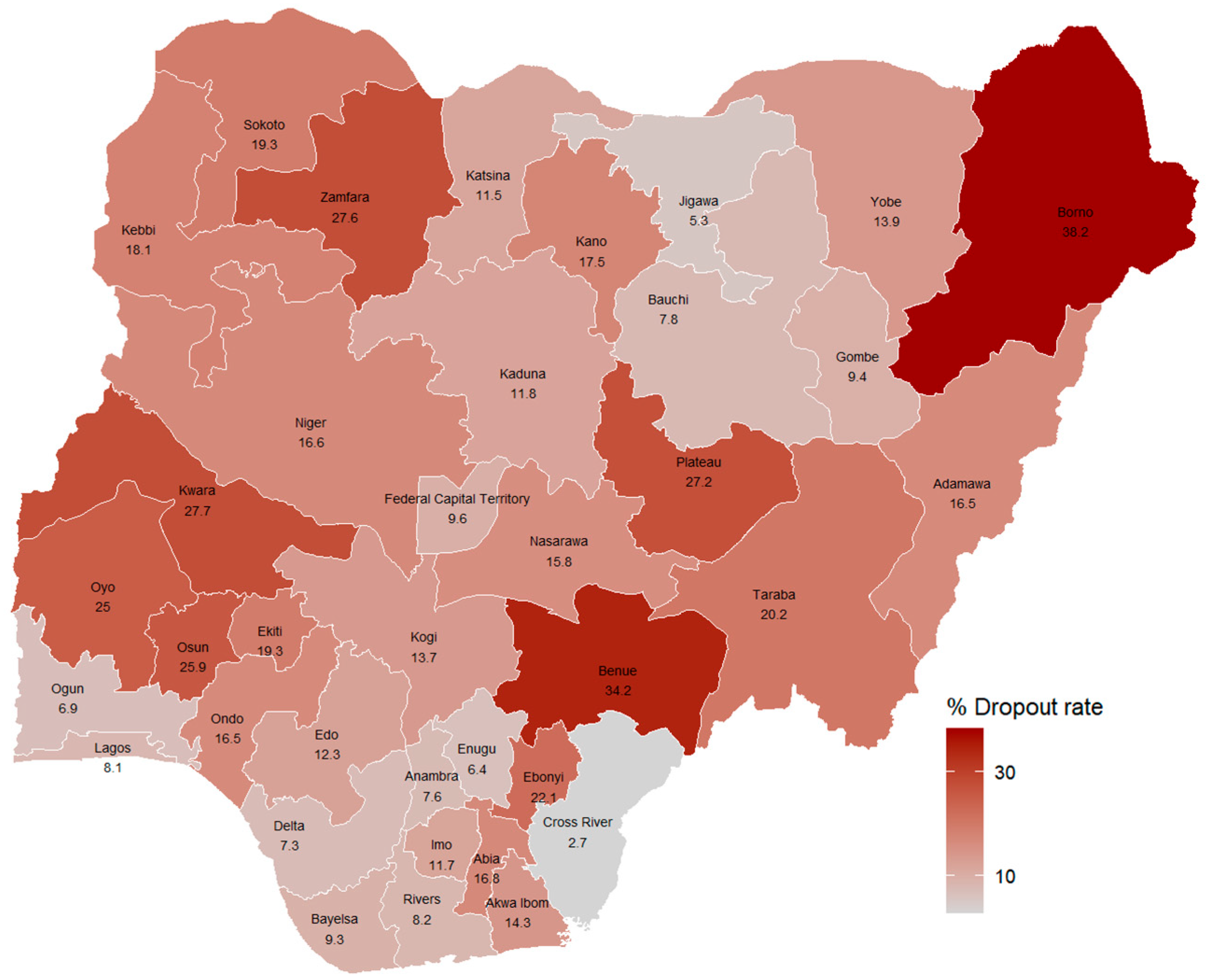 The 2018 penta 1–3 vaccination dropout rate in Nigeria [20].