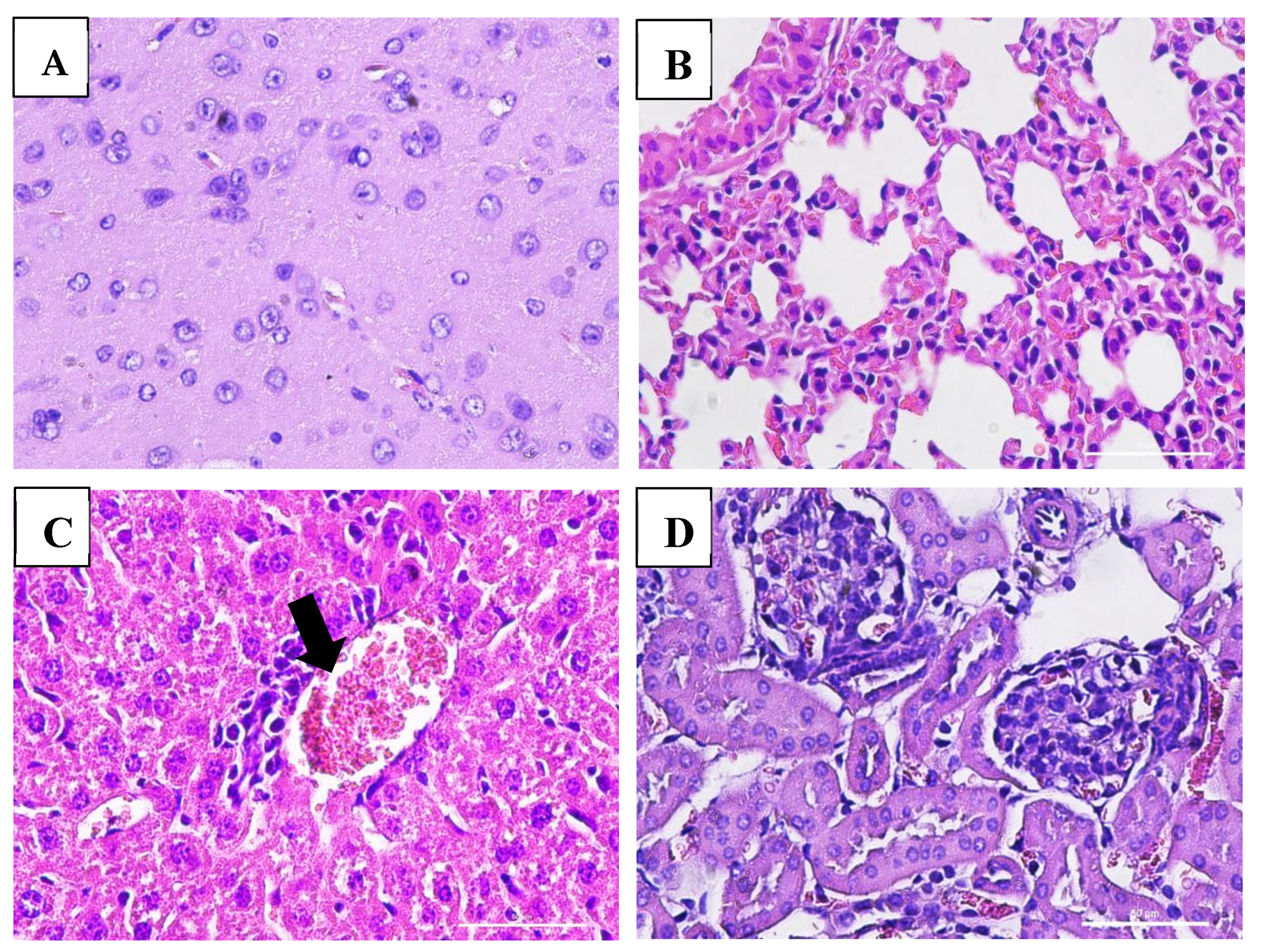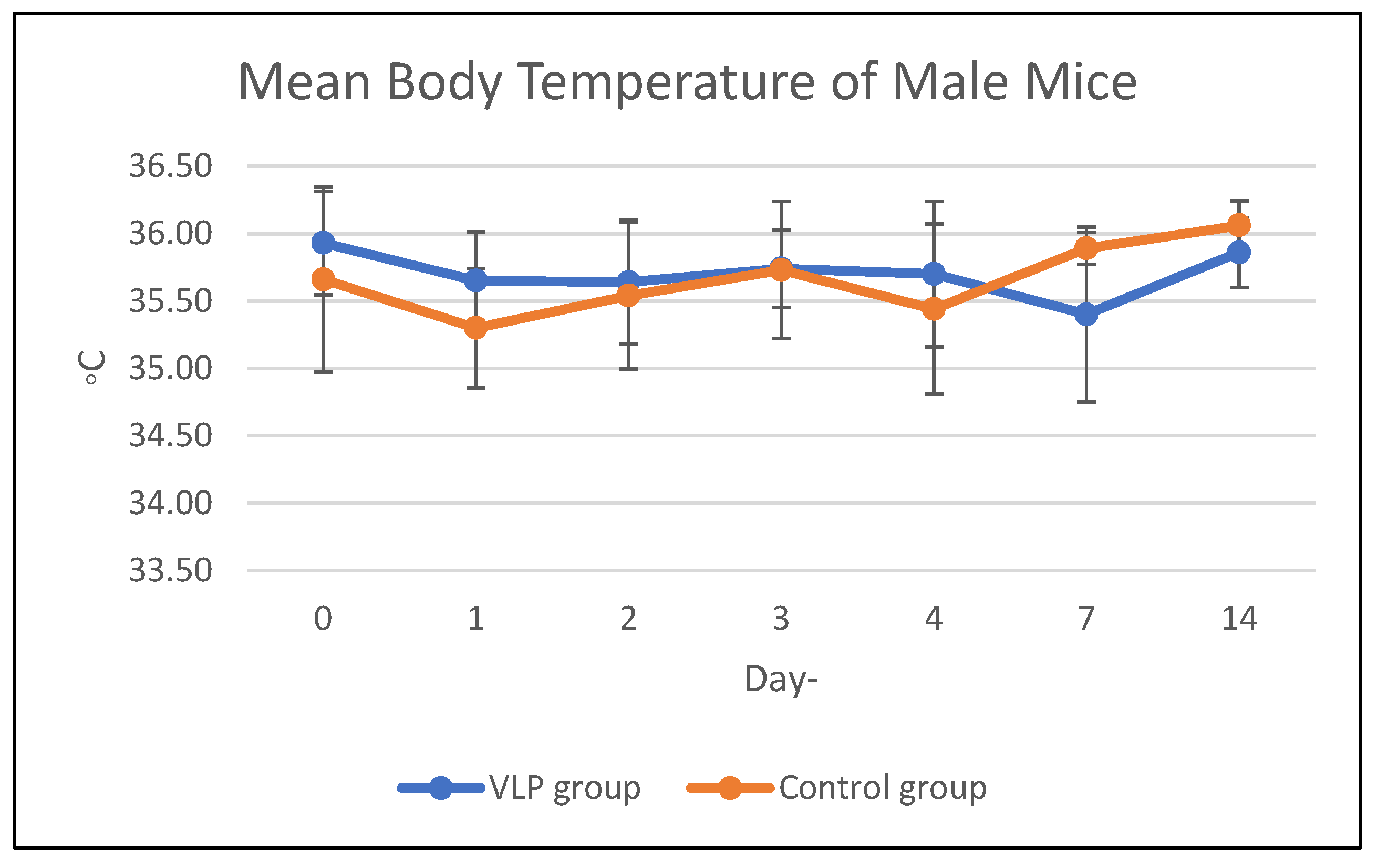 3.7. Effect of VLP Dengue Vaccine on Clinical Pathology and Histopathology Changes