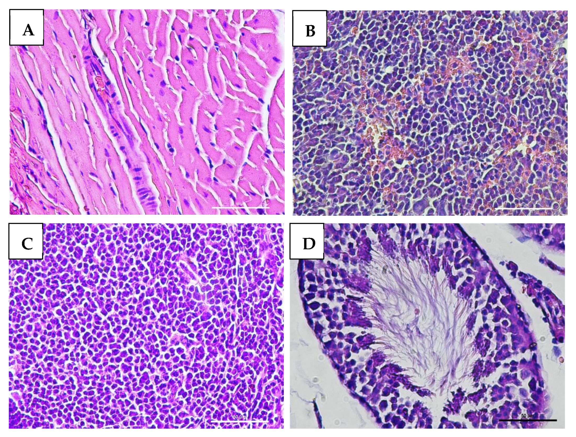 - Silva-Santana, G.; Bax, J.C.; Fernandes, D.C.S.; Bacellar, D.T.L.; Hooper, C.; Dias, A.A.S.O.; Silva, C.B.; de Souza, A.M.; Ramos, S.; Santos, R.A.; et al. Clinical hematological and biochemical parameters in Swiss, BALB/c, C57BL/6 and B6D2F1 Mus musculus. Anim. Model Exp. Med. 2020, 3, 304–315. [Google Scholar] [CrossRef]