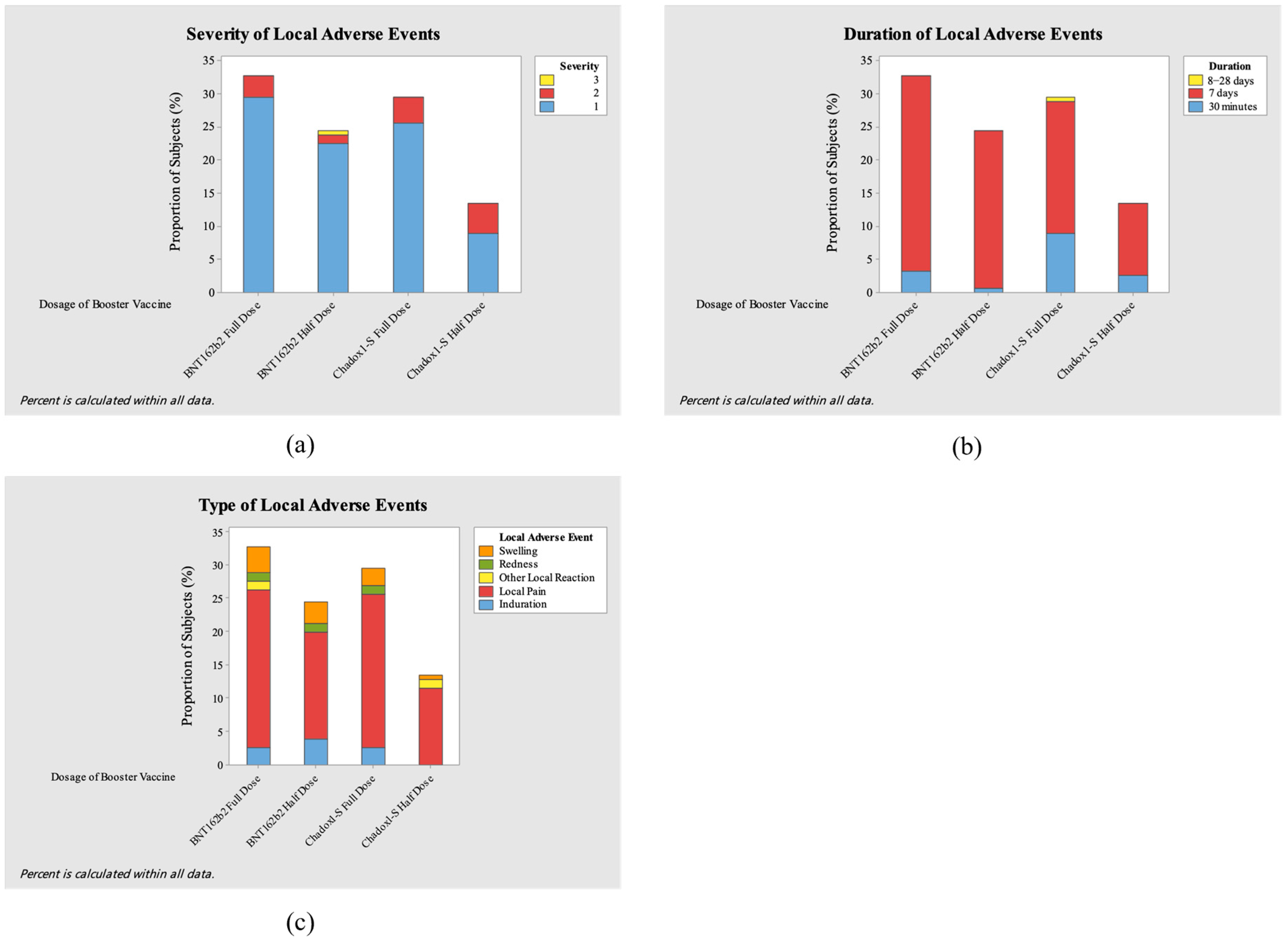 - San Francisco Ramos, A.; Liu Sanchez, C.; Bovill Rose, T.; Smith, D.; Thorn, N.; Galiza, E.; Miah, T.; Pearce, J.; Hultin, C.; Cosgrove, C.; et al. Comparing reactogenicity of COVID-19 vaccine boosters: A systematic review and meta-analysis. Expert Rev. Vaccines 2024, 23, 266–282. [Google Scholar] [CrossRef] [PubMed]