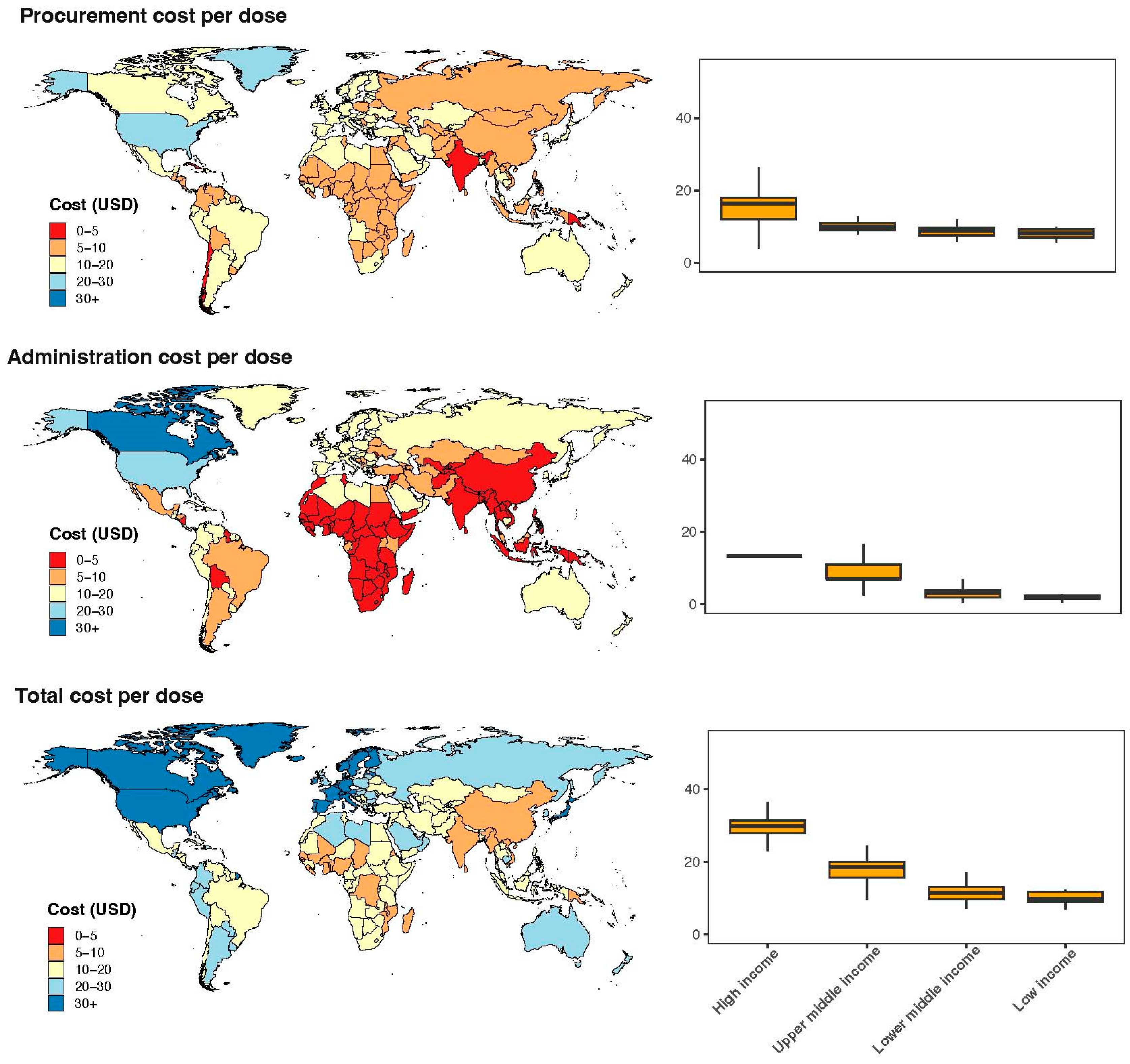 - Mustafa Diab, M.; Zimmerman, A.; Dixit, S.; Mao, W.; Bharali, I.; Kristoffersen, A.; Yamey, G.; Ogbuoji, O. The Cost of Procuring and Delivering COVID-19 Vaccines in Low- and Middle-Income Countries: A Model of Projected Resource Needs. SSRN Electron. J. 2021. [Google Scholar] [CrossRef]