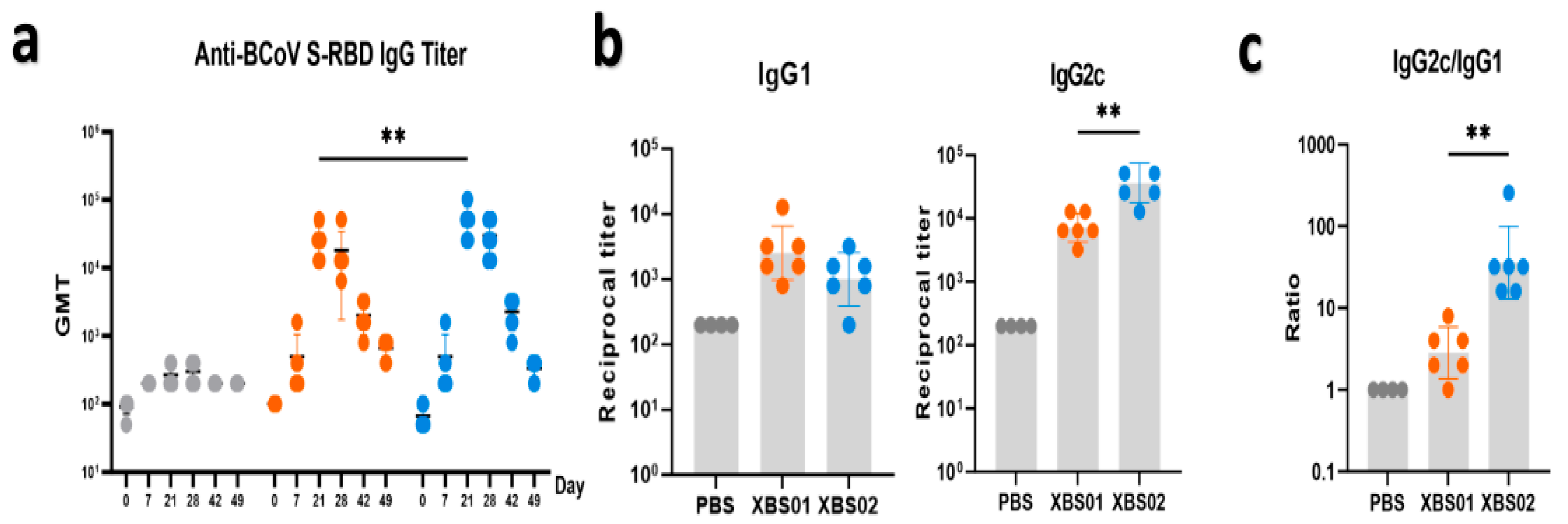 3.2. Induction of BCoV S-RBD-Specific Antibodies by Vaccines in Mice