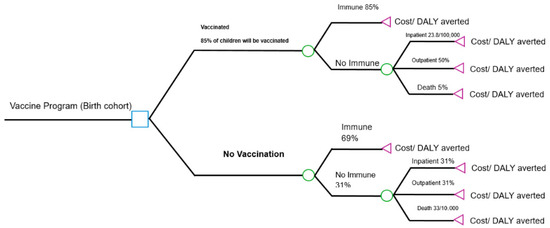 - Patela, H.D.; Roberts, E.T.; Constenla, D.O. Cost-Effectiveness of a new Rotavirus Vaccination Program in Pakistan: A Decision Tree Model. Vaccine 2013, 31, 6072–6078. [Google Scholar] [CrossRef] [PubMed]