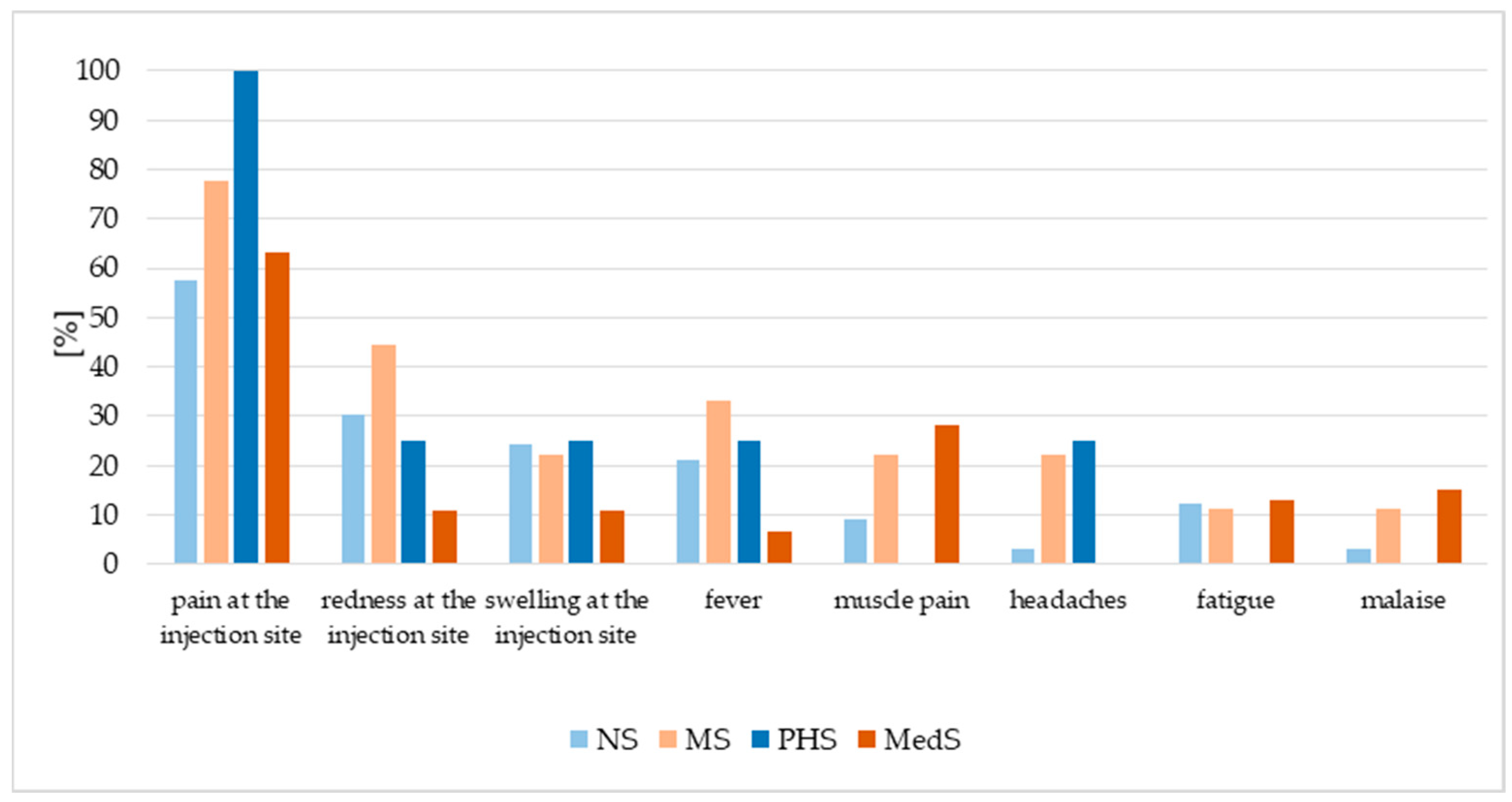 - Kałucka, S.; Kusideł, E.; Głowacka, A.; Oczoś, P.; Grzegorczyk-Karolak, I. Pre-vaccination stress, post-vaccination adverse reactions, and attitudes towards vaccination after receiving the COVID-19 vaccine among health care workers. Vaccines 2022, 10, 401. [Google Scholar] [CrossRef]