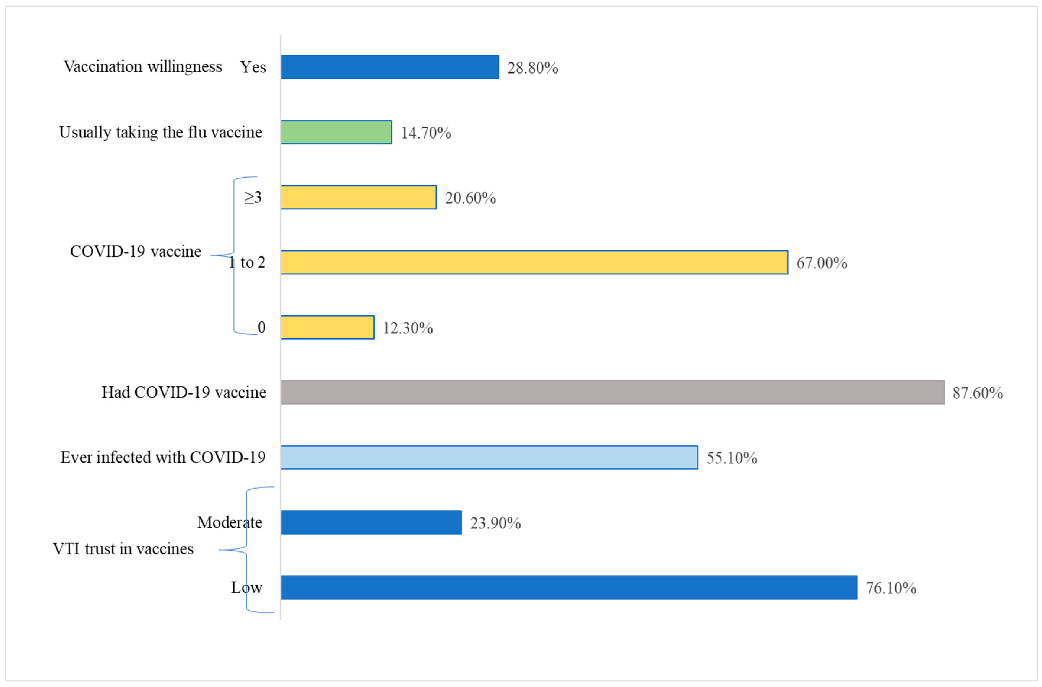 | Vaccine Trust Indicator (VTI) | Low | 775 | 87.8% | 169 | 47.2% | <0.001 |