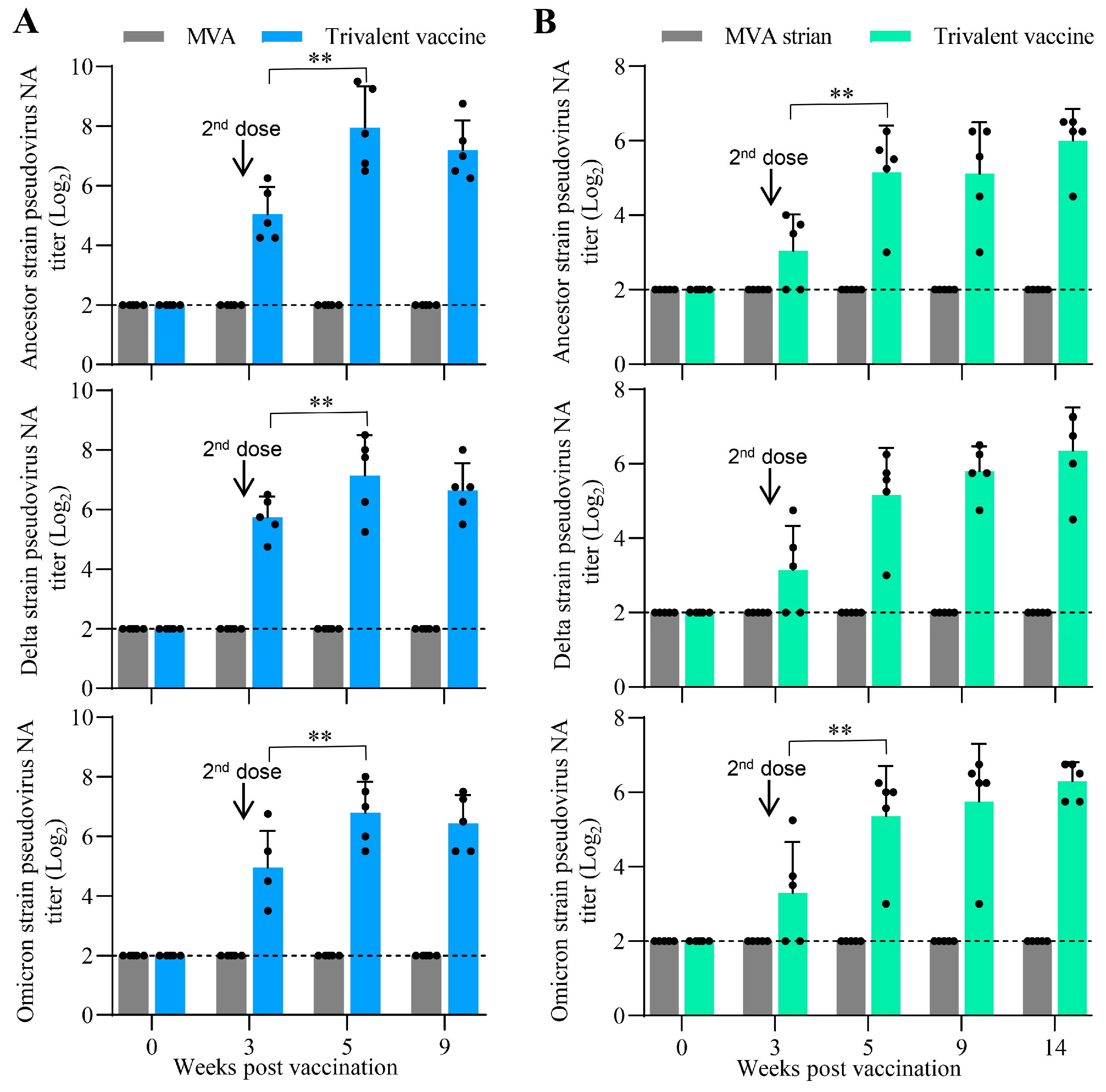 3.5. Combined Immunization with These Recombinant MVAs Did Not Compromise the Immunogenicity of Each Recombinant MVA in Mice