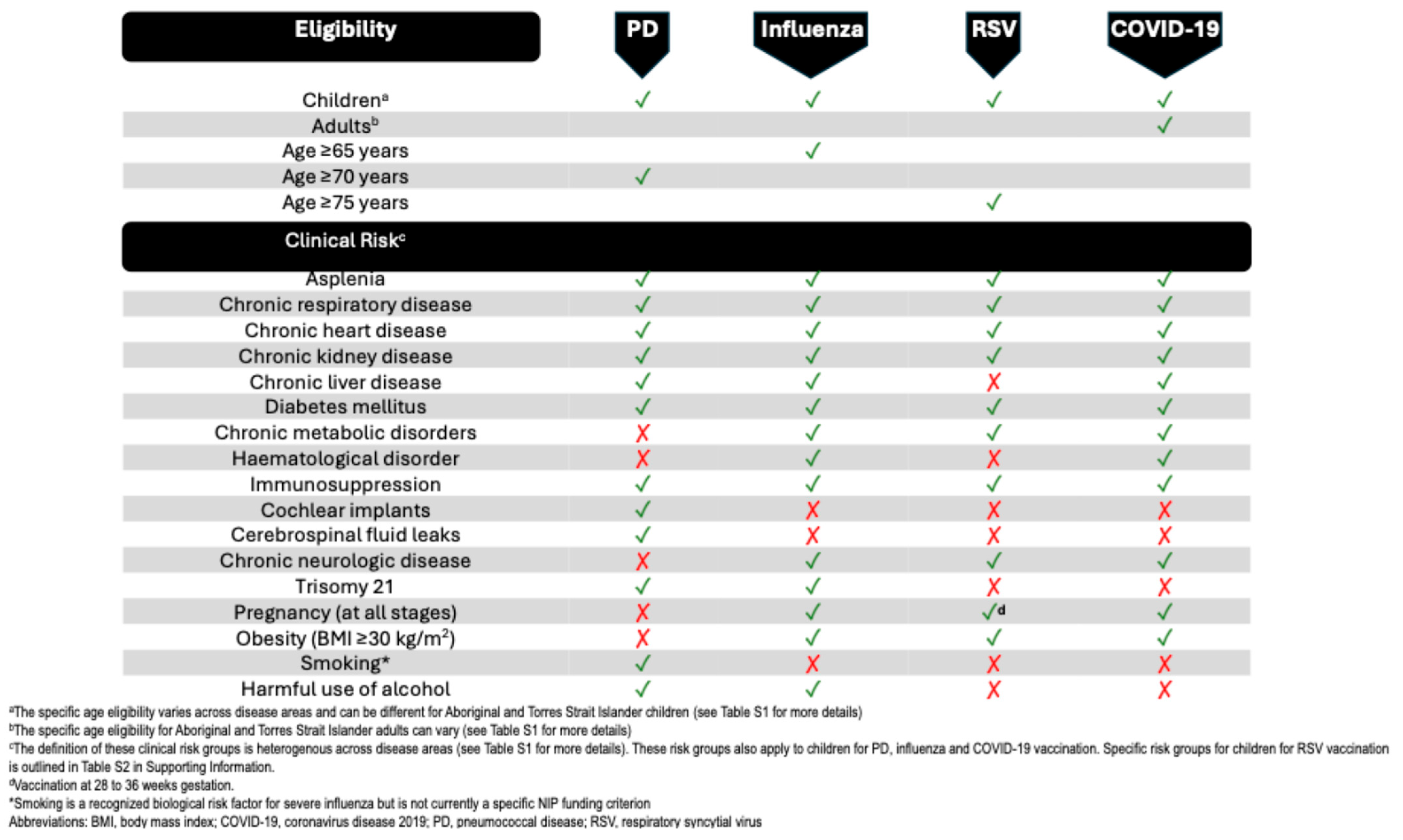 Risk Groups for Vaccine-Preventable Respiratory Infections in Children and Adults: An Overview of the Australian Environment