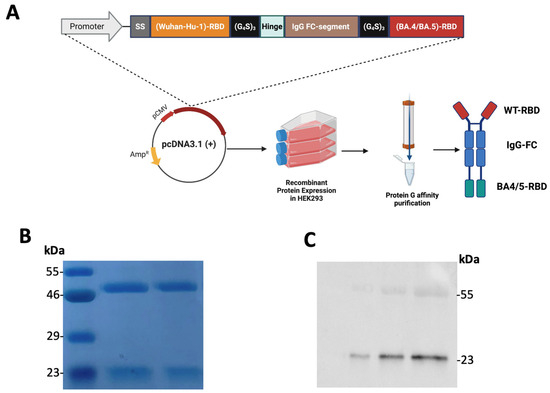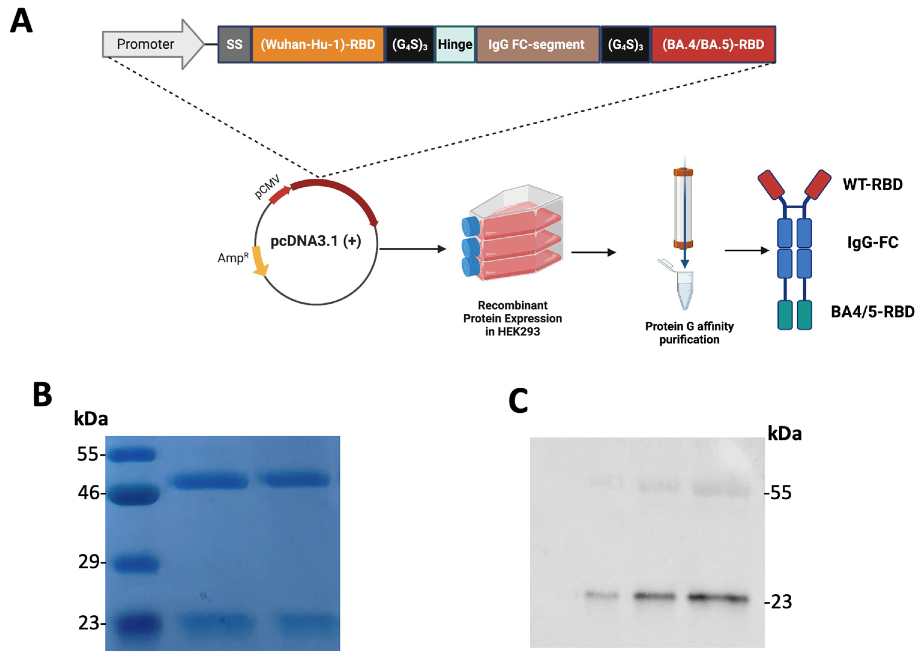 2.3. Expression and Purification of Tetravalent RBD–Fc