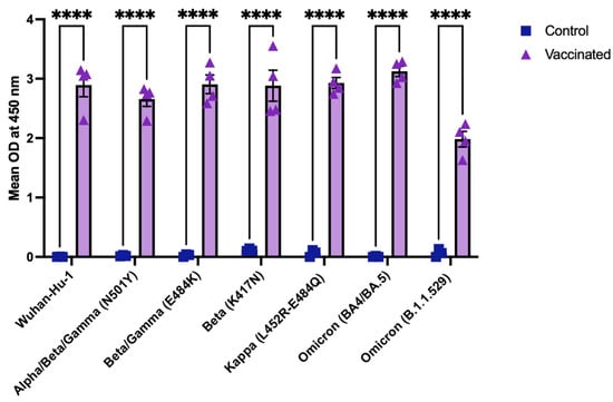 3.4. Cross-Reactive Binding of Vaccinated Mouse Sera to SARS-CoV-2 RBD Variants
