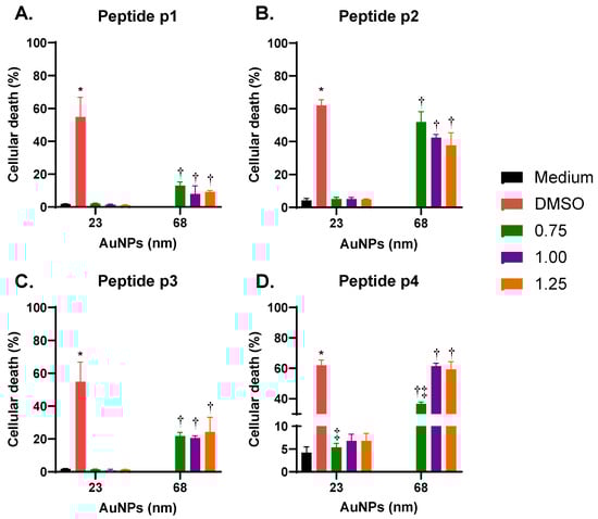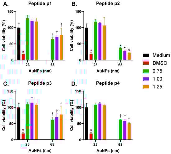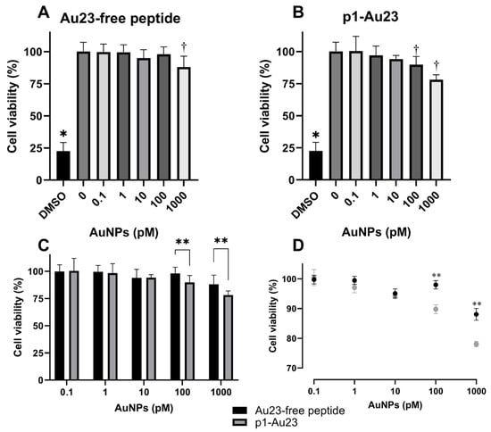 3.3. Effects of p1-AuNPs Concentration on Cell Viability