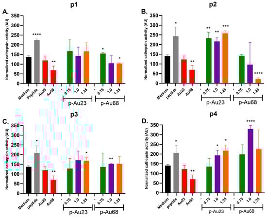 - Speshock, J.L.; Braydich-Stolle, L.K.; Szymanski, E.R.; Hussain, S.M. Silver and Gold Nanoparticles Alter Cathepsin Activity In Vitro. Nanoscale Res. Lett. 2010, 6, 17. [Google Scholar] [CrossRef]